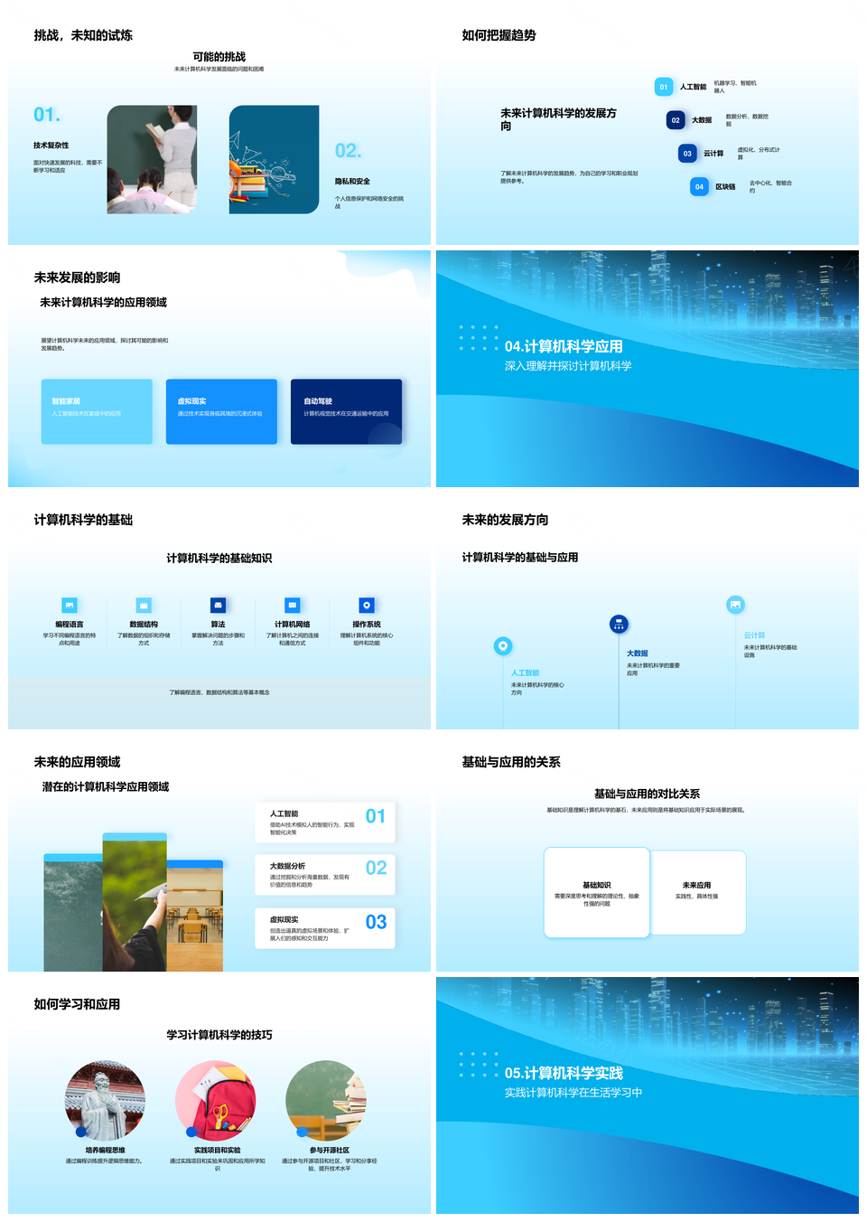 这是一张计算机科学未来基础应用与研究挑战PPT模板,包含计算机科学、未来、基础应用、研究挑战等主题内容,也可用作计算机科学未来基础应用、未来基础应用研究、基础应用研究挑战、计算机科学未来基础、未来基础应用、基础应用研究、应用研究挑战、计算机科学基础应用、计算机科学应用研究、计算机科学研究挑战、计算机科学未来、未来基础、基础应用、应用研究、研究挑战等PPT场景使用。
