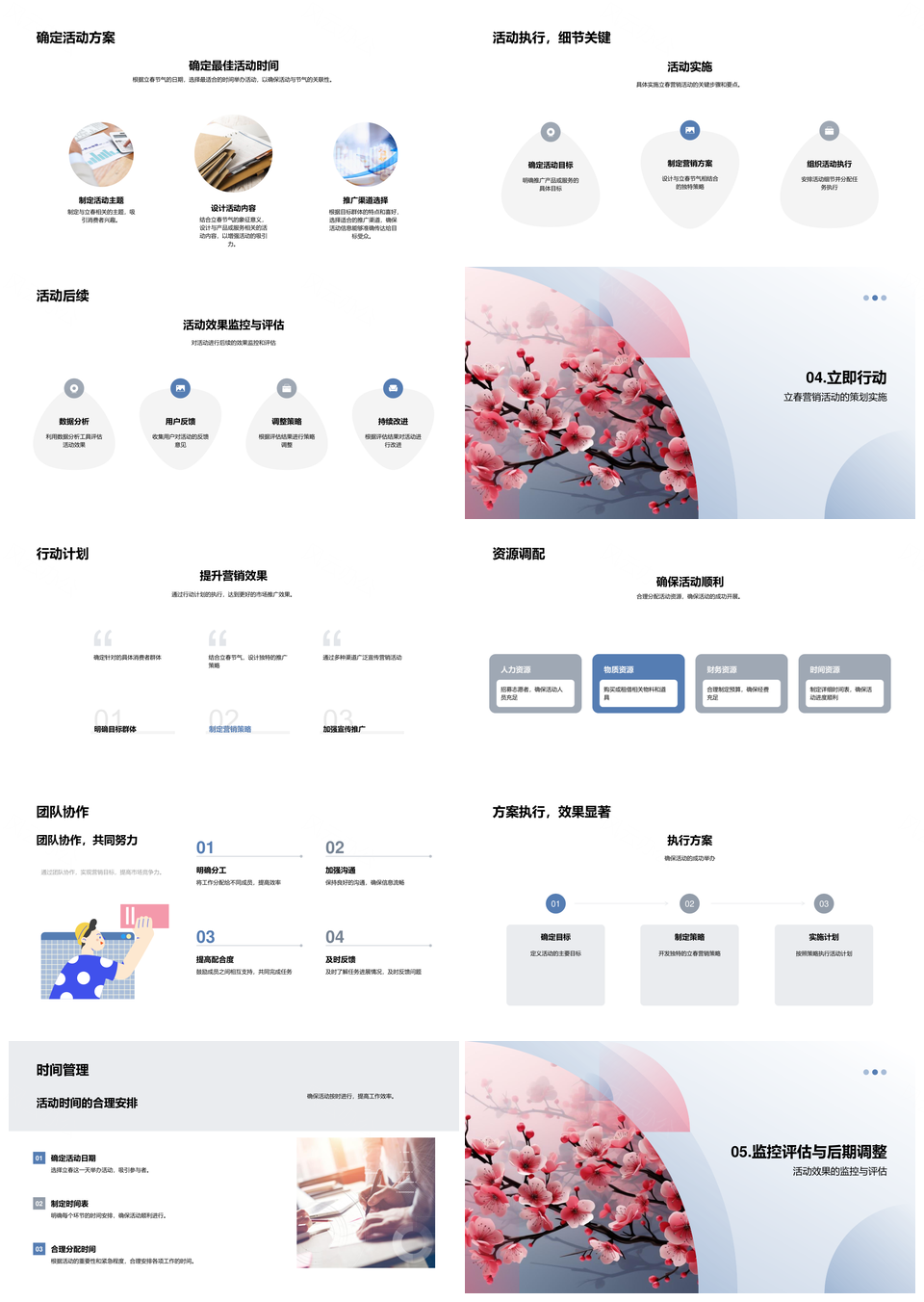 立春迎春节气营销品牌促销包装樱花群体策略PPT模板