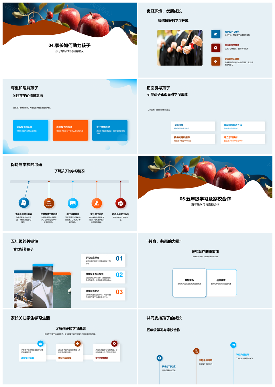 五年级家校共育学业社交协作成长未来规划PPT模板