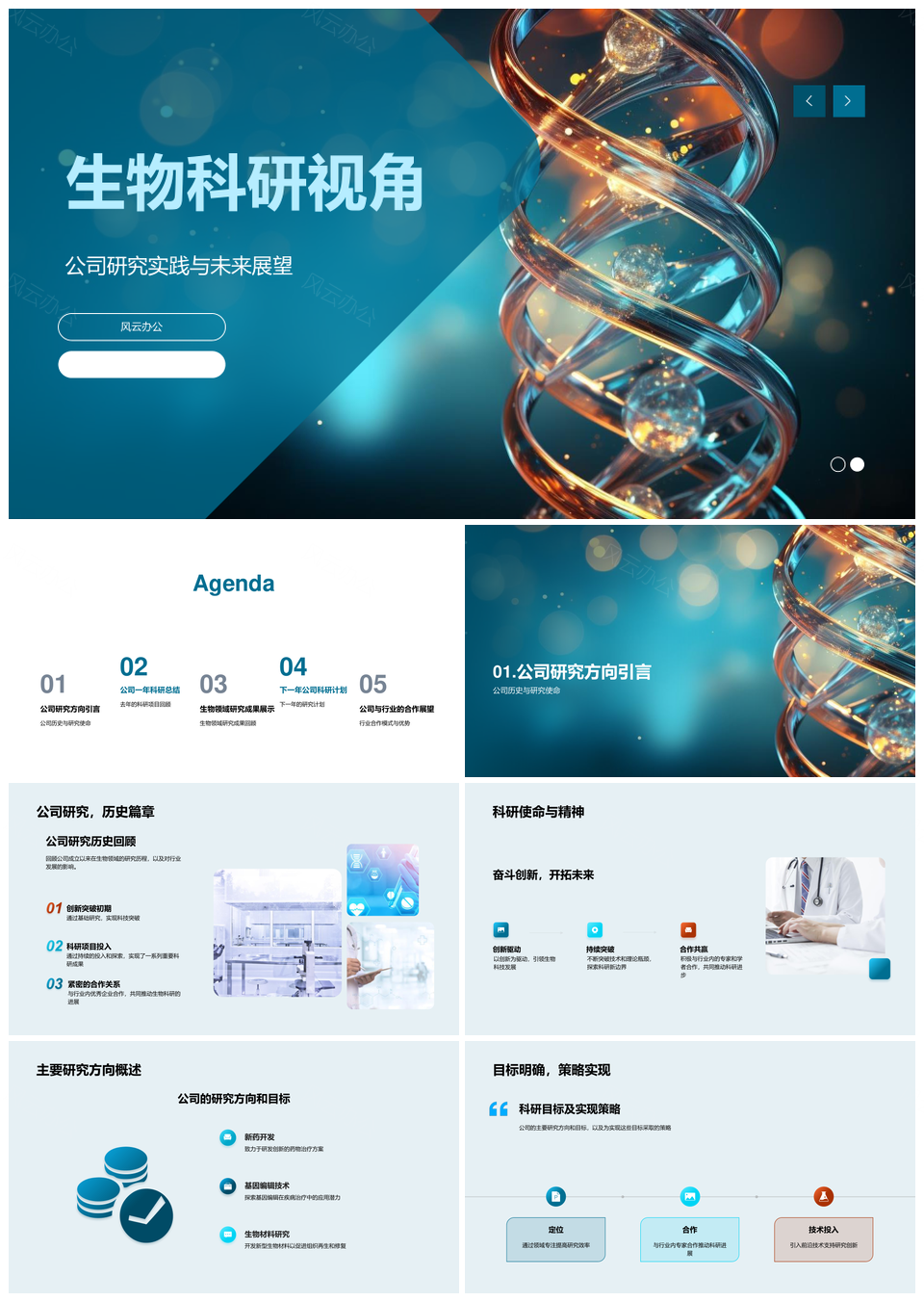 风云办公提供的生物医疗科研企业研发未来展望PPT模板,下载格式为pptx,一共24页,作品中文字及图均可以修改和编辑,图片更改请在作品中右键图片并更换,文字修改请直接点击文字进行修改。