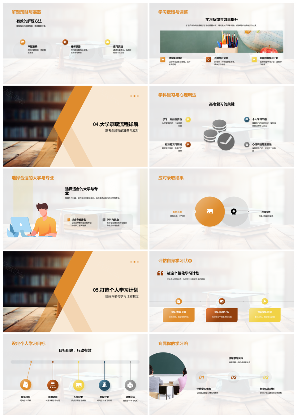风云办公提供的高考拼搏科学规划学习冲刺大学录取PPT模板,下载格式为pptx,一共29页,作品中文字及图均可以修改和编辑,图片更改请在作品中右键图片并更换,文字修改请直接点击文字进行修改。