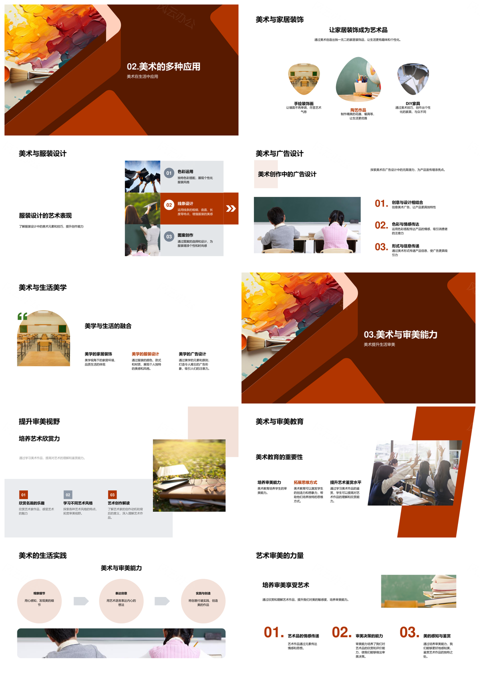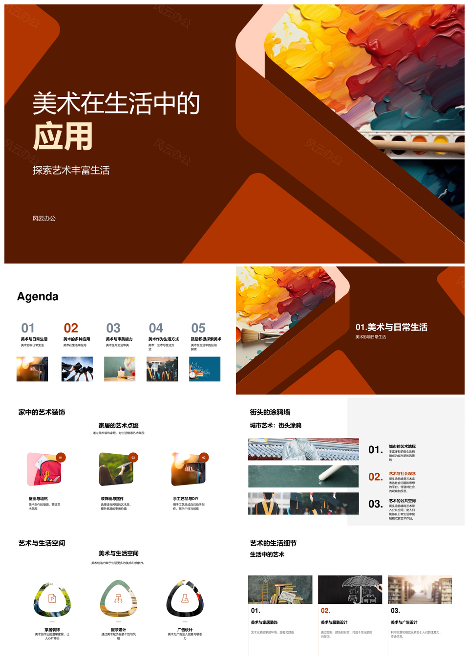 风云办公提供的美术融入生活家居服装广告设计PPT模板,下载格式为pptx,一共28页,作品中文字及图均可以修改和编辑,图片更改请在作品中右键图片并更换,文字修改请直接点击文字进行修改。