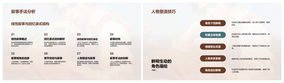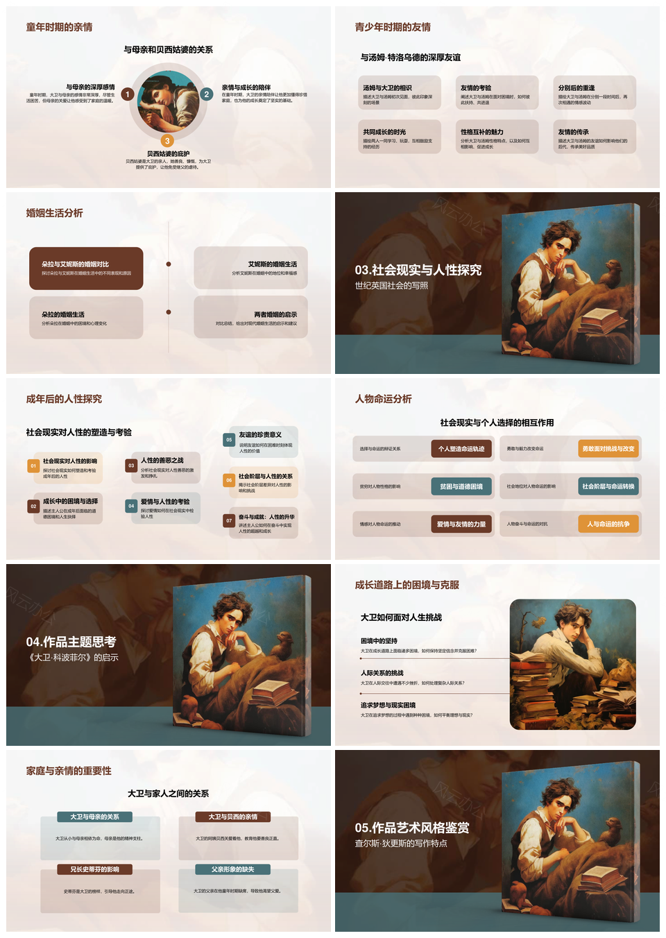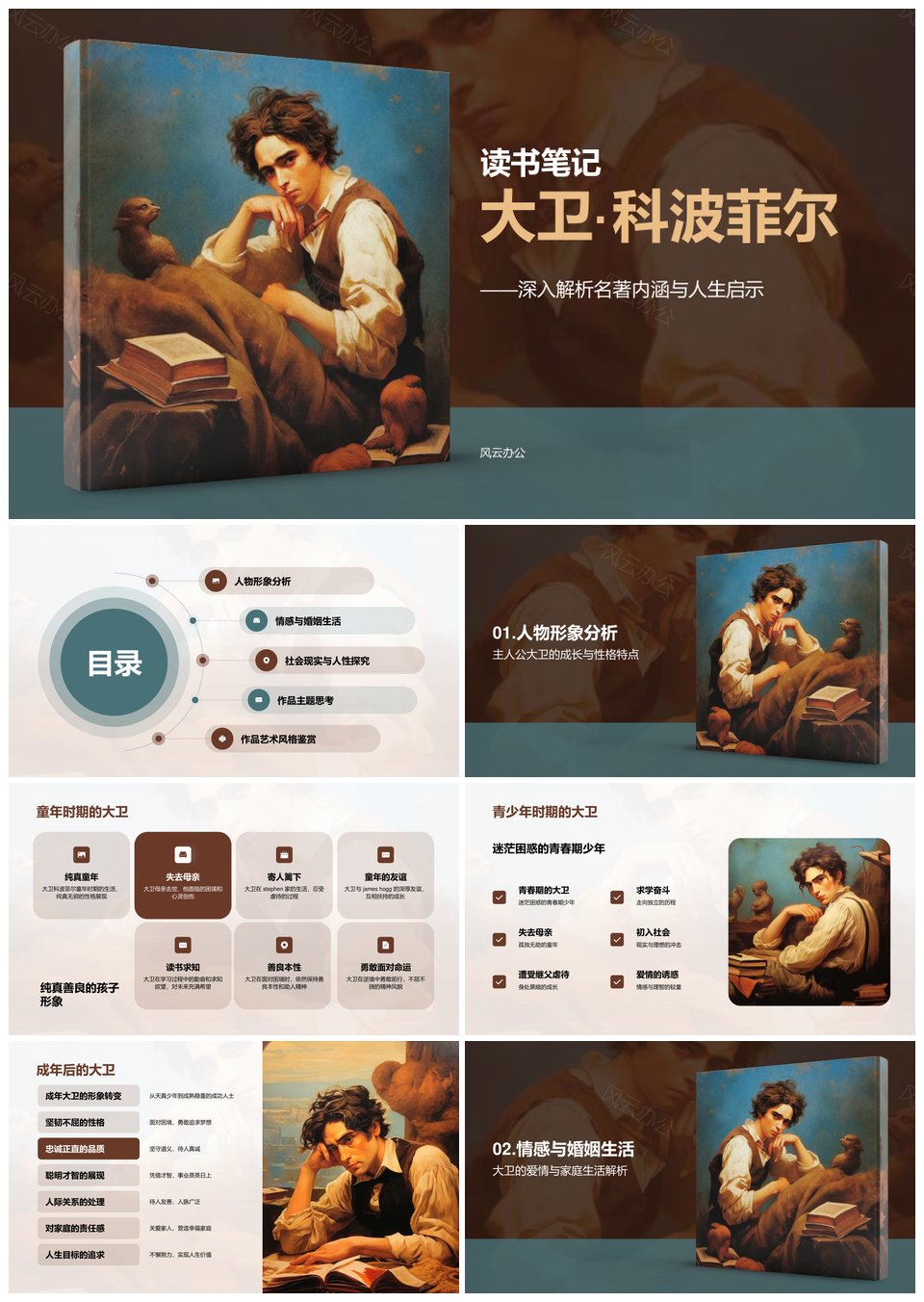 风云办公提供的复古黄大卫科波菲尔读书笔记人物分析PPT模板,下载格式为pptx,一共20页,作品中文字及图均可以修改和编辑,图片更改请在作品中右键图片并更换,文字修改请直接点击文字进行修改。