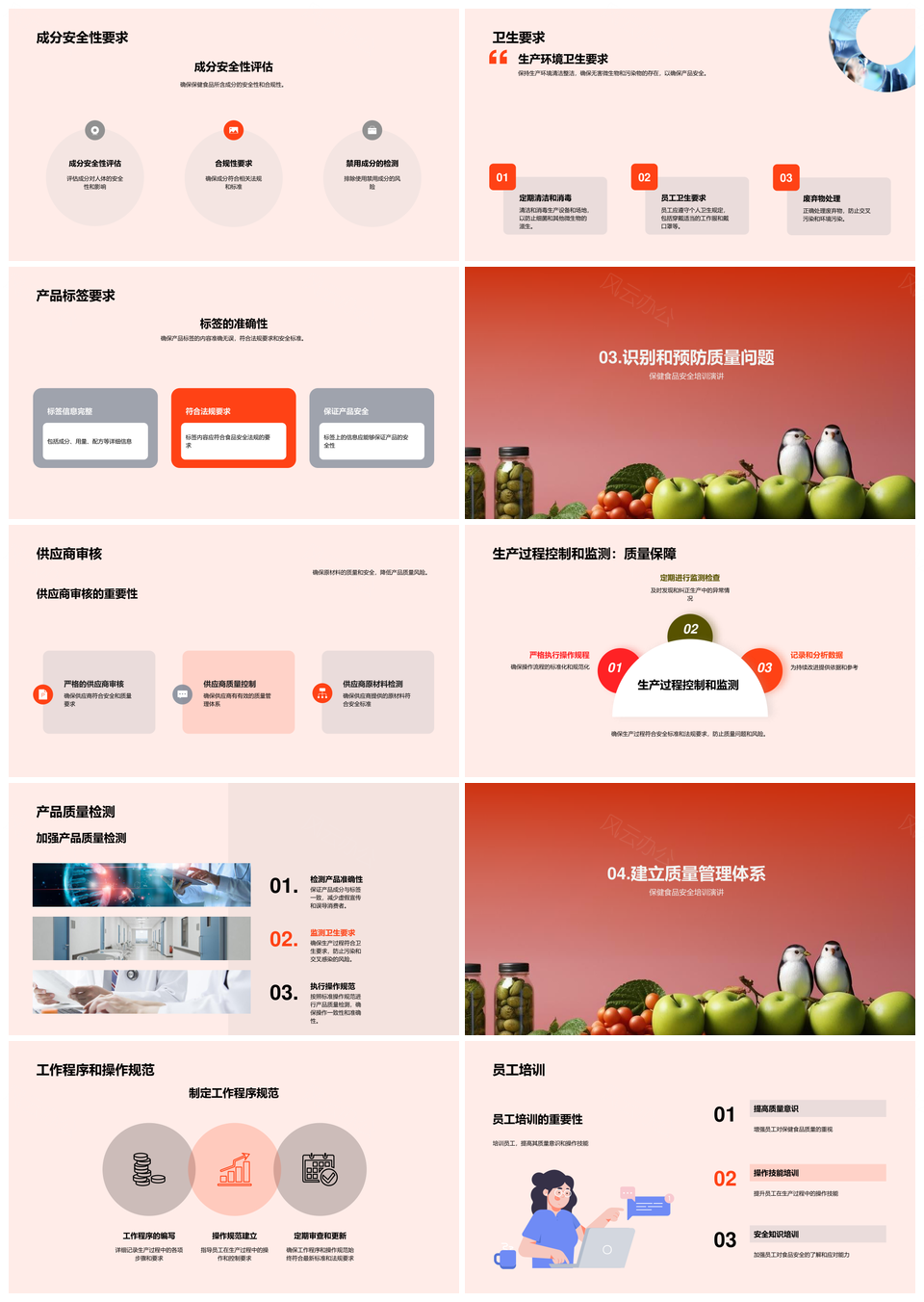 风云办公提供的保健食品制造商质量安全管控防风险PPT模板,下载格式为pptx,一共28页,作品中文字及图均可以修改和编辑,图片更改请在作品中右键图片并更换,文字修改请直接点击文字进行修改。