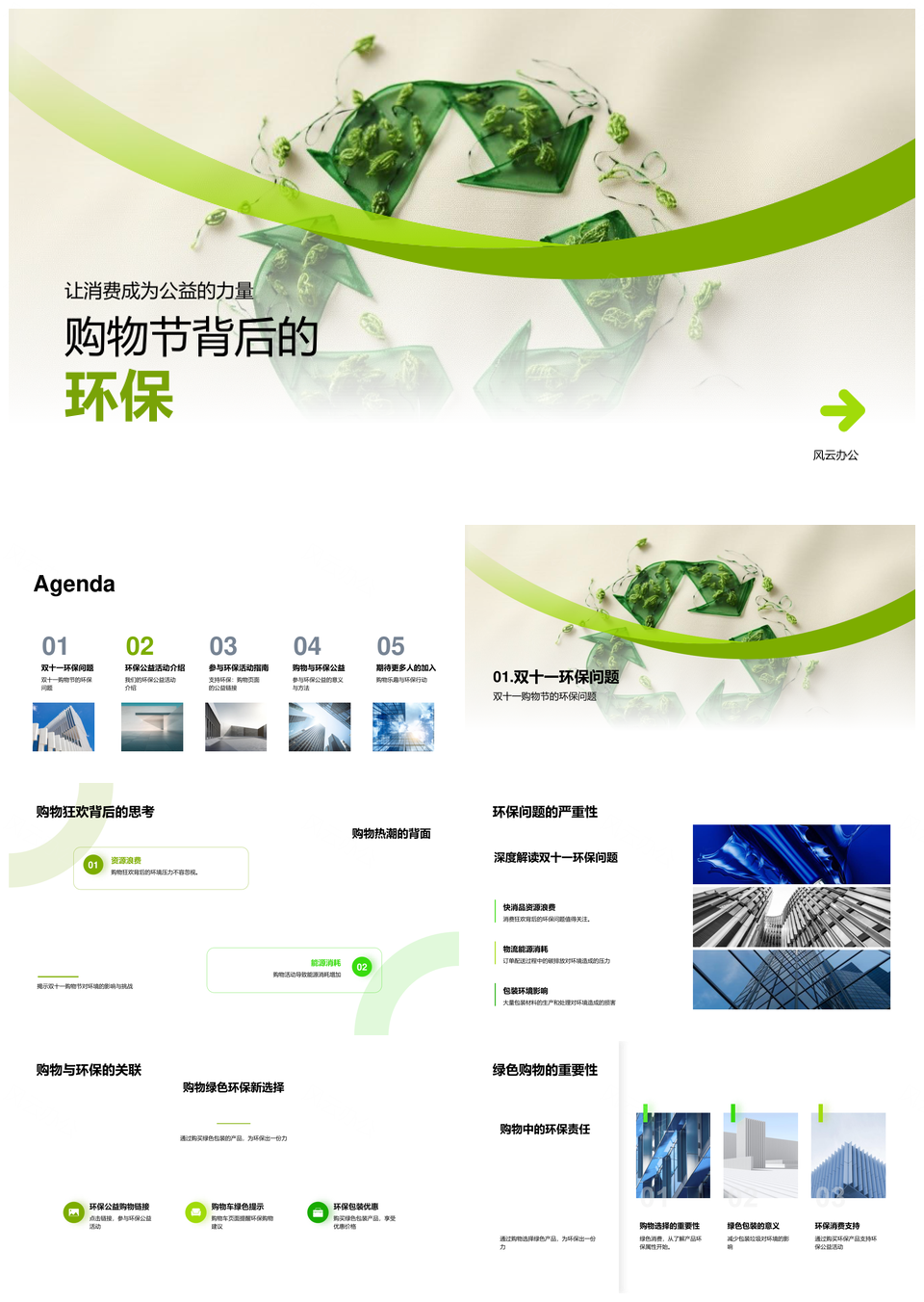 风云办公提供的双十一购物节环保公益倡导绿色包装PPT模板,下载格式为pptx,一共28页,作品中文字及图均可以修改和编辑,图片更改请在作品中右键图片并更换,文字修改请直接点击文字进行修改。