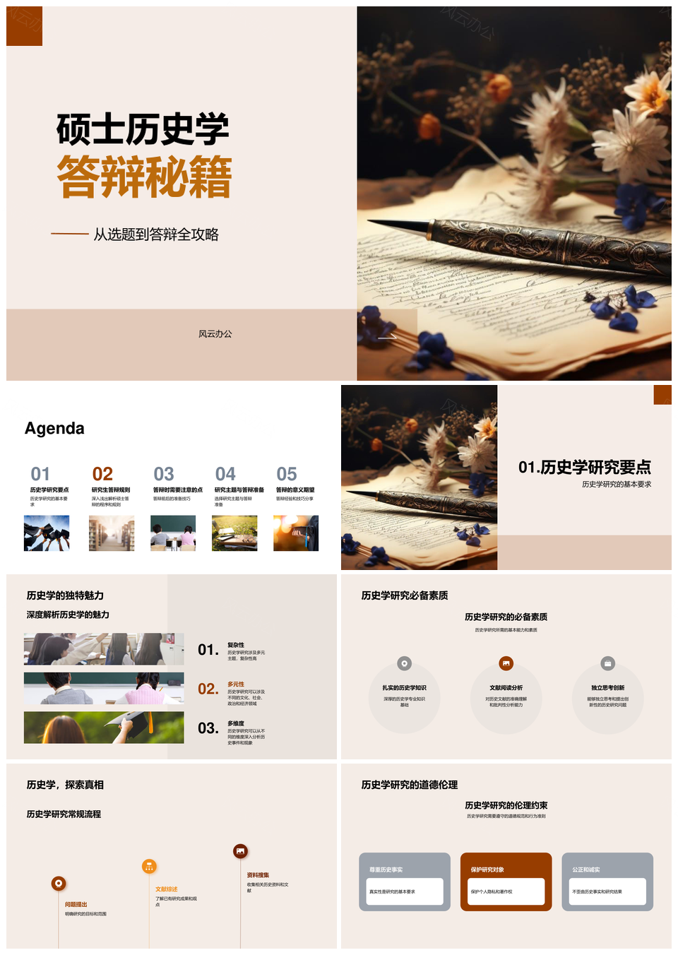 硕士历史学答辩全流程攻略与古代卷轴研究PPT模板推荐