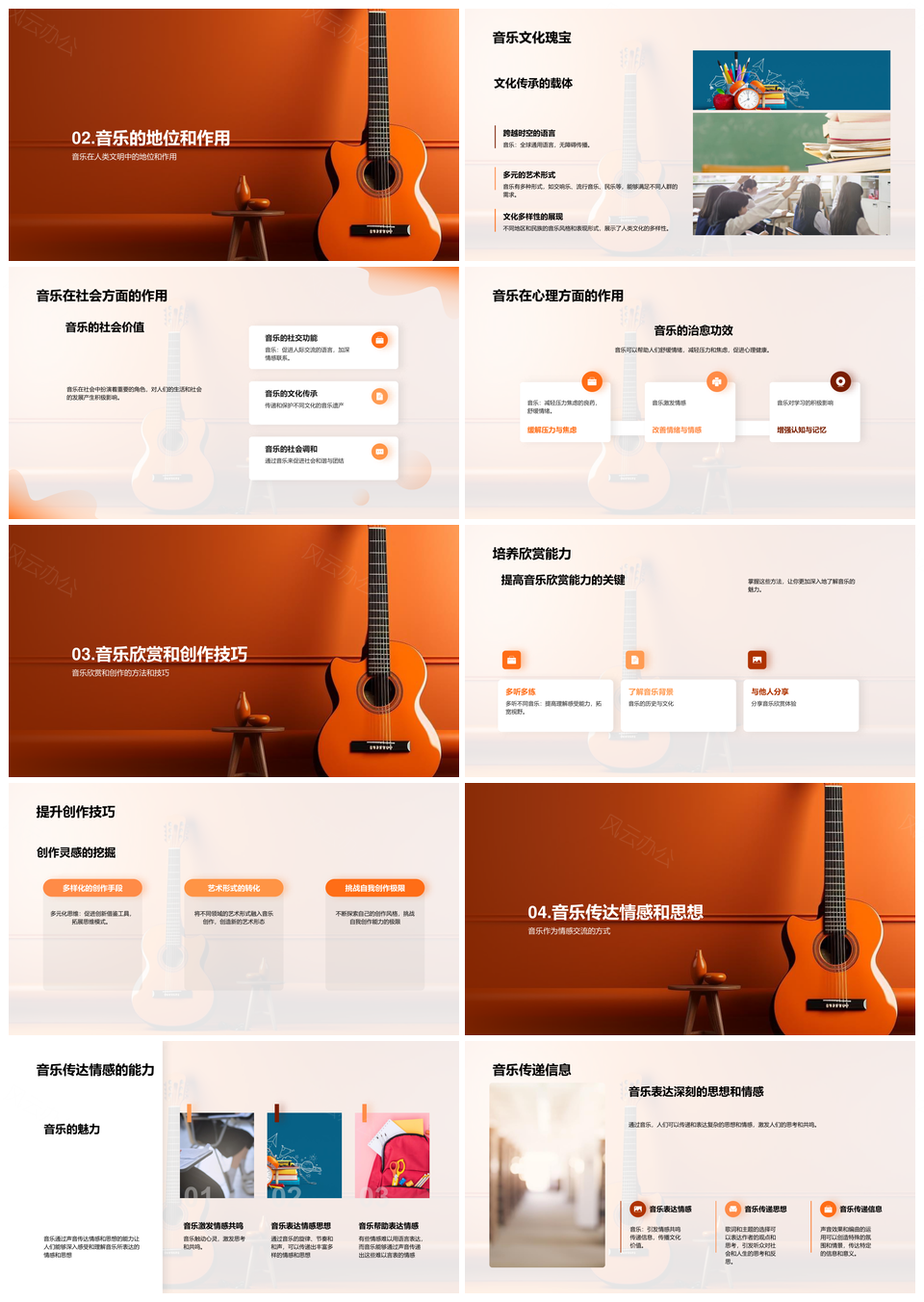 风云办公提供的音乐创作欣赏魅力文化社会心理意义PPT模板,下载格式为pptx,一共22页,作品中文字及图均可以修改和编辑,图片更改请在作品中右键图片并更换,文字修改请直接点击文字进行修改。