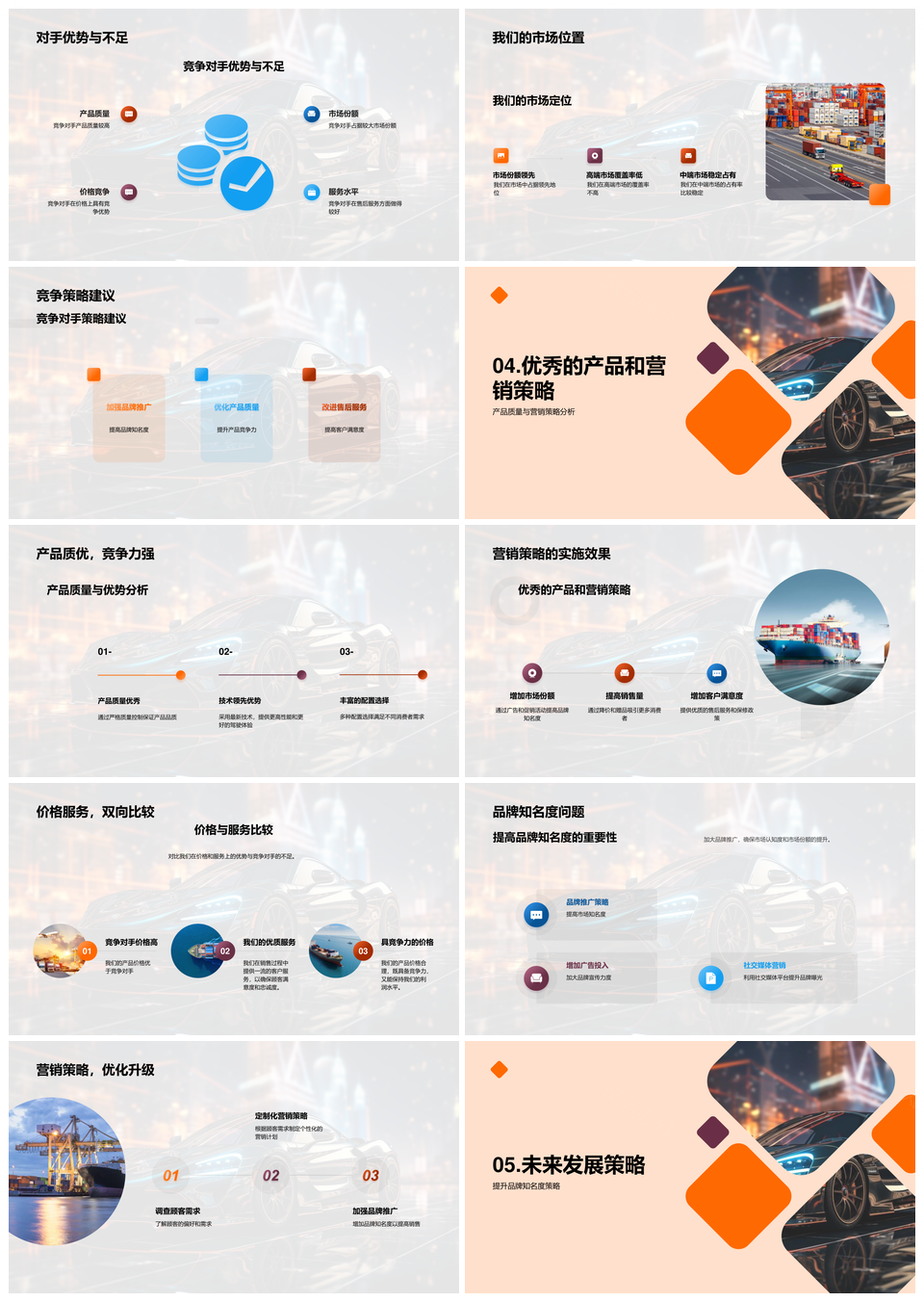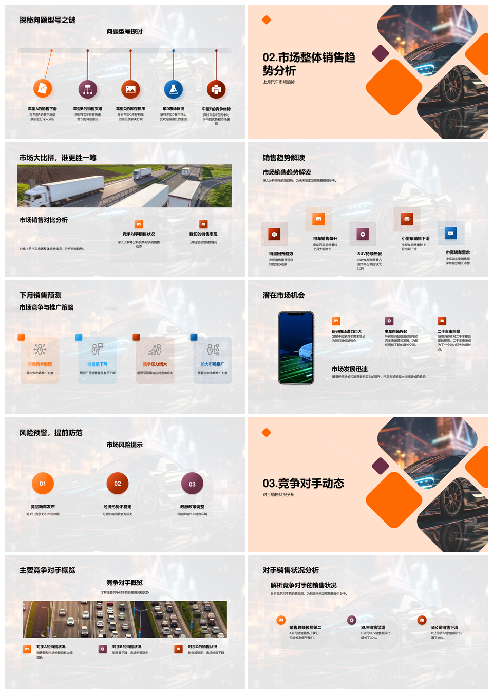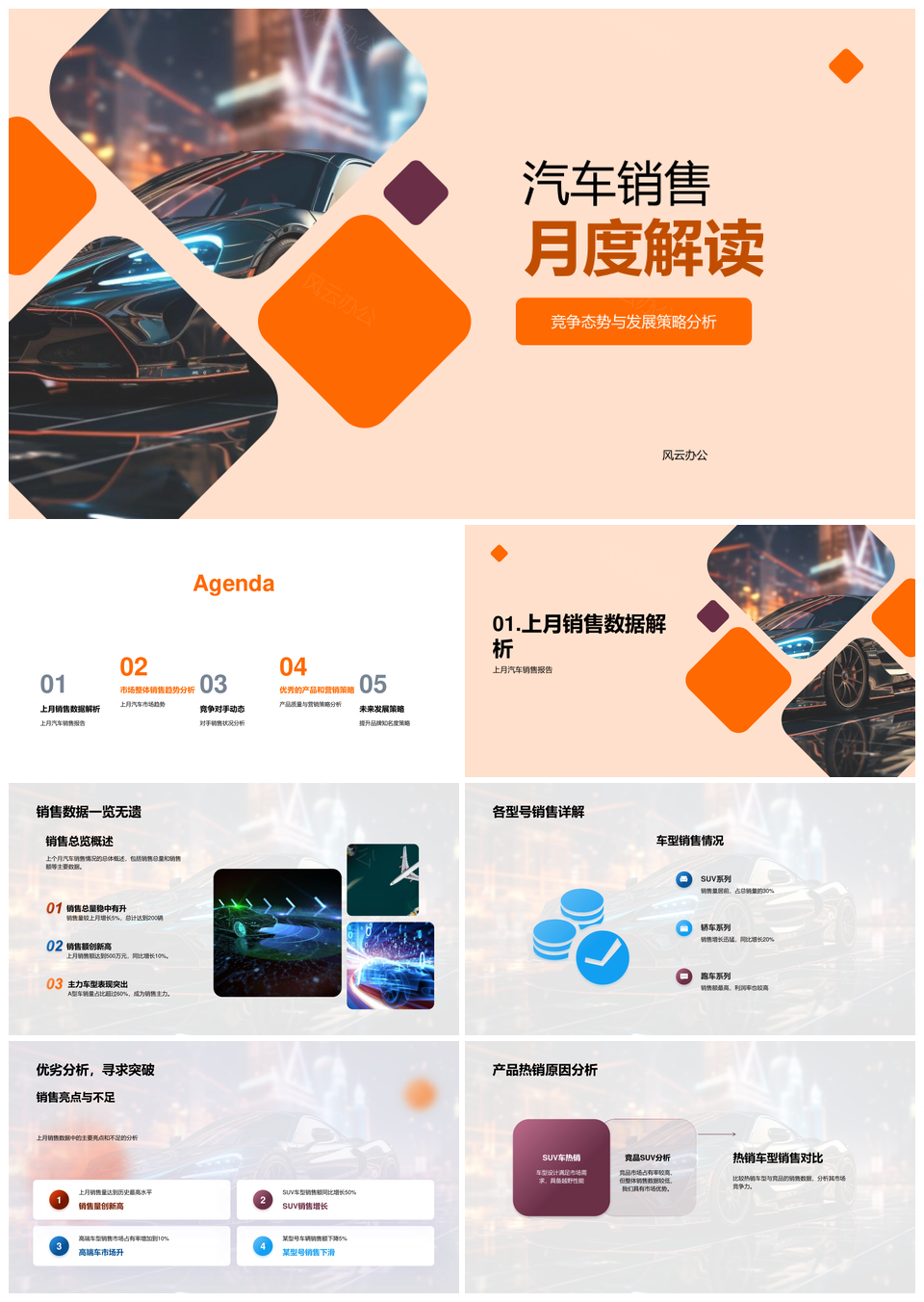 风云办公提供的汽车销售市场竞争策略与趋势分析PPT模板,下载格式为pptx,一共33页,作品中文字及图均可以修改和编辑,图片更改请在作品中右键图片并更换,文字修改请直接点击文字进行修改。