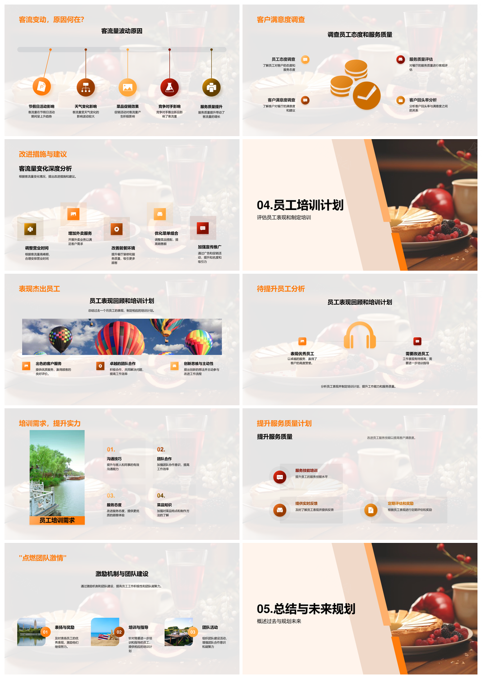 餐厅运营月销售数据客流量菜品员工发展计划PPT模板推荐
