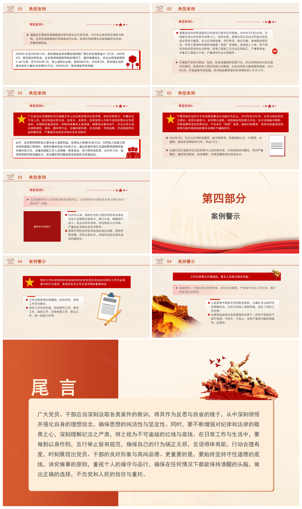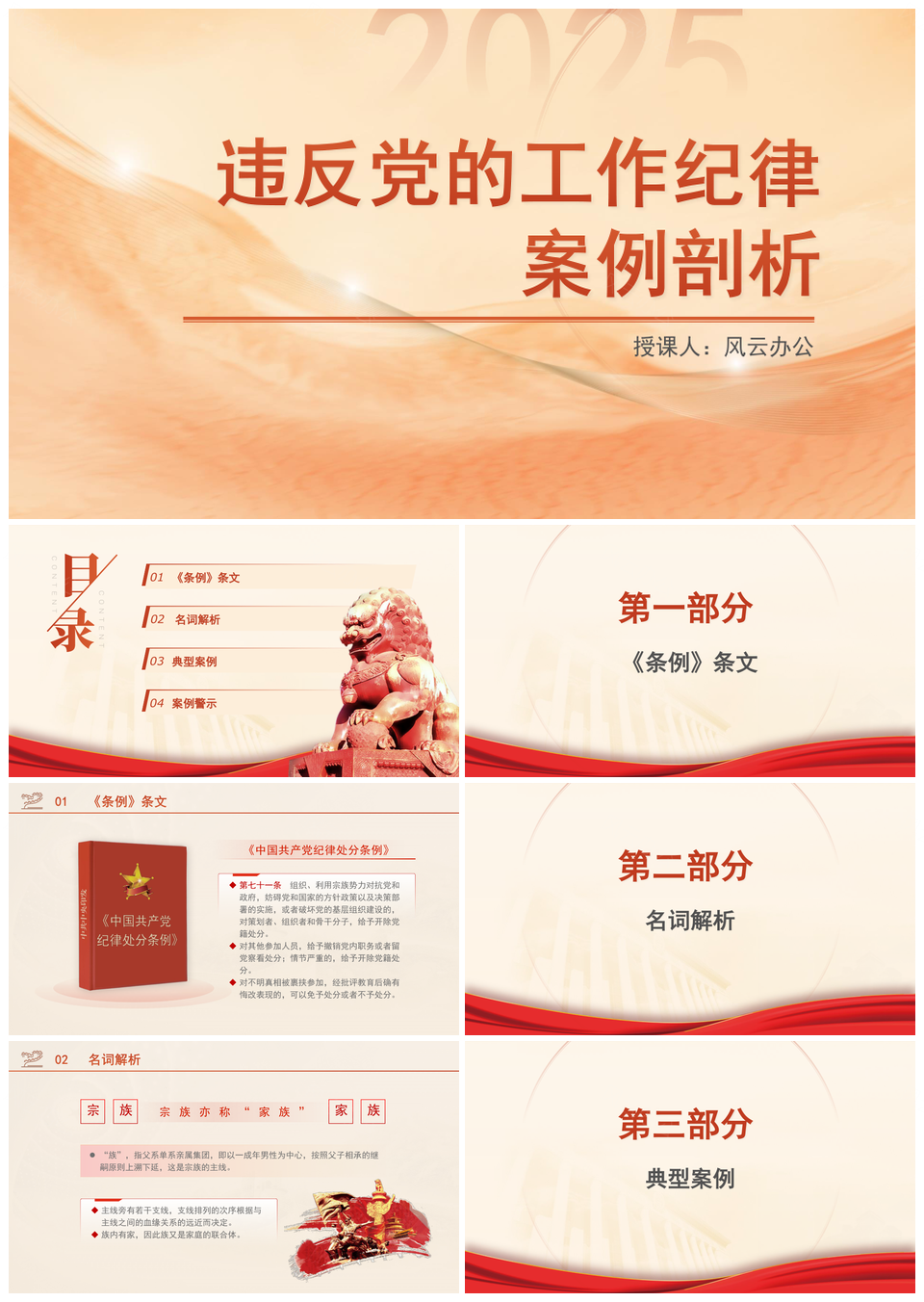 这是一张2025违反工作纪律案例剖析纪律教育党课PPT模板,包含2025、违反、工作纪律、案例、剖析、纪律教育、党课等主题内容,也可用作2025违反工作纪律案例剖析、违反工作纪律案例剖析纪律、工作纪律案例剖析纪律教育、案例剖析纪律教育党课、违反工作纪律纪律教育、工作纪律纪律教育党课、纪律教育党课2025、案例剖析教育党课纪律、违反工作纪律教育党课、2025违反纪律教育、工作纪律案例剖析、案例剖析党课、违反工作纪律案例、纪律教育党课、工作纪律案例等PPT场景使用。 风云办公提供的2025违反工作纪律案例剖析纪律教育党课PPT模板,下载格式为pptx,一共17页,作品中文字及图均可以修改和编辑,图片更改请在作品中右键图片并更换,文字修改请直接点击文字进行修改。