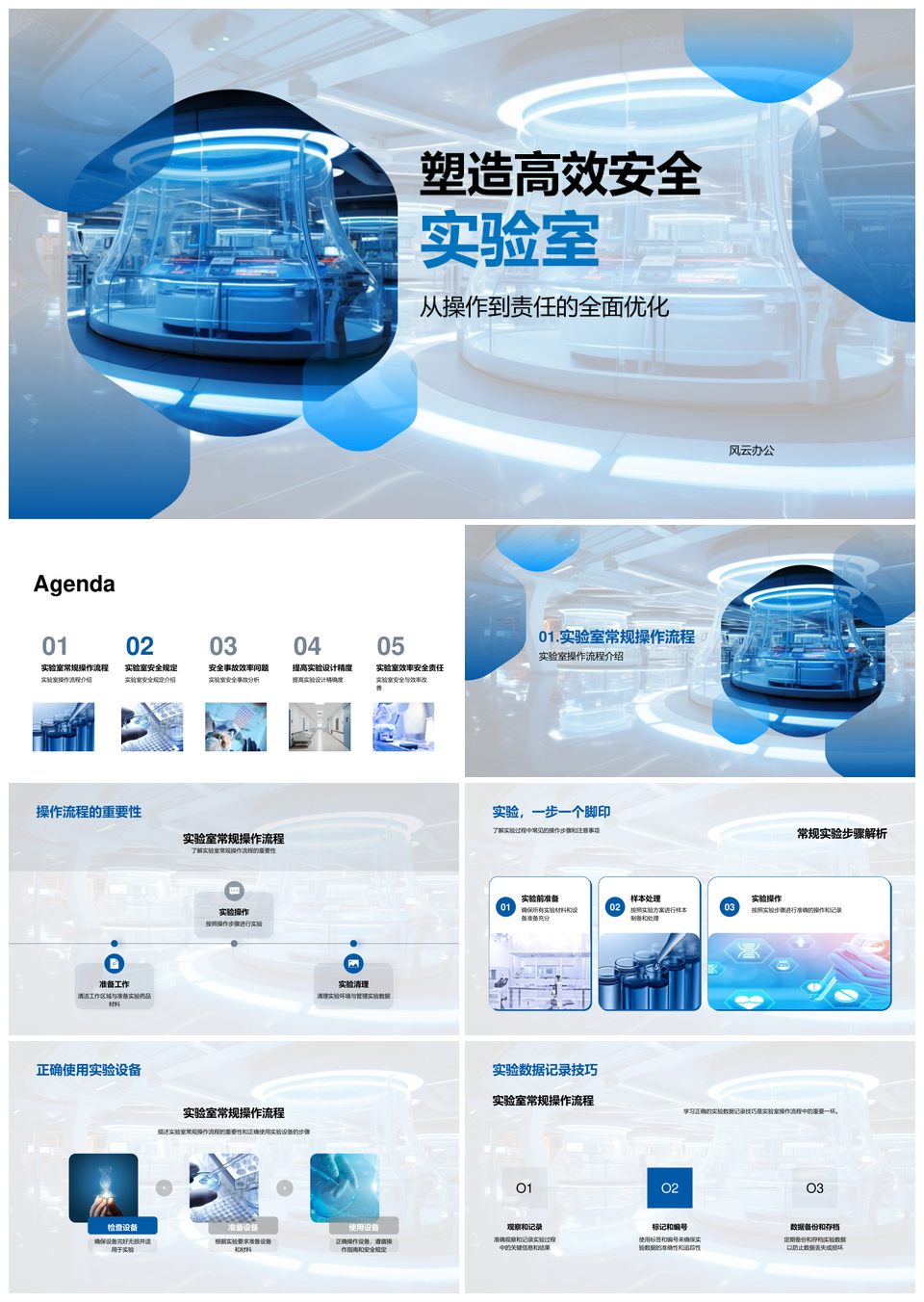 风云办公提供的高效安全实验室规范管理与应急处理PPT模板,下载格式为pptx,一共33页,作品中文字及图均可以修改和编辑,图片更改请在作品中右键图片并更换,文字修改请直接点击文字进行修改。