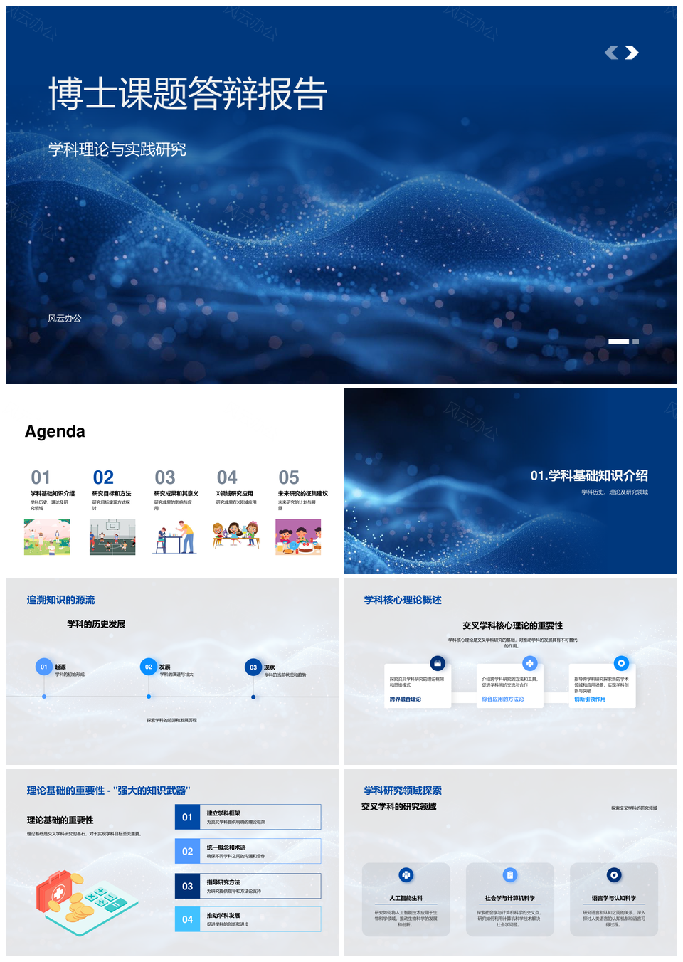 博士答辩学科基础研究目标成果应用交叉发展PPT模板