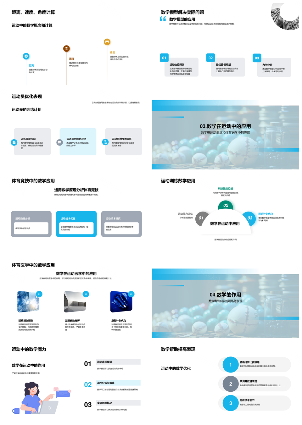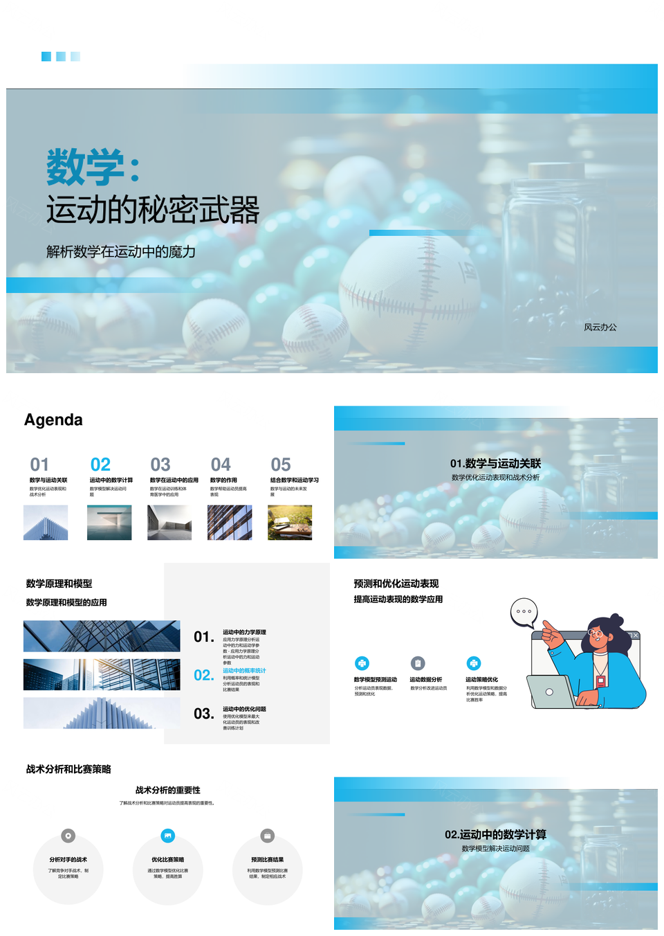 风云办公提供的运动数学关联模型预测优化战术分析PPT模板,下载格式为pptx,一共23页,作品中文字及图均可以修改和编辑,图片更改请在作品中右键图片并更换,文字修改请直接点击文字进行修改。