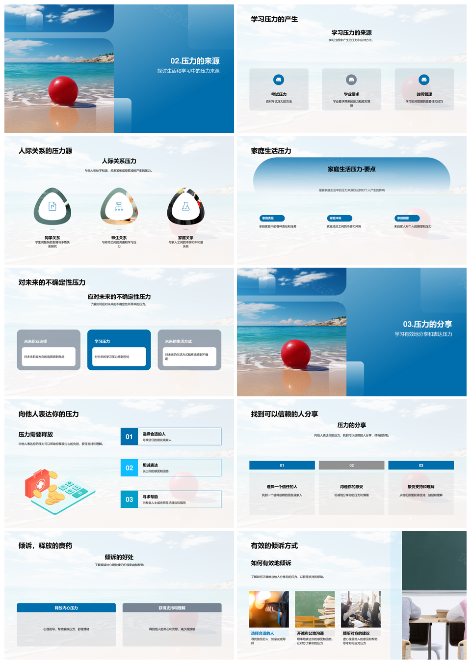 风云办公提供的掌控学业人际家庭压力轻松生活PPT模板,下载格式为pptx,一共28页,作品中文字及图均可以修改和编辑,图片更改请在作品中右键图片并更换,文字修改请直接点击文字进行修改。