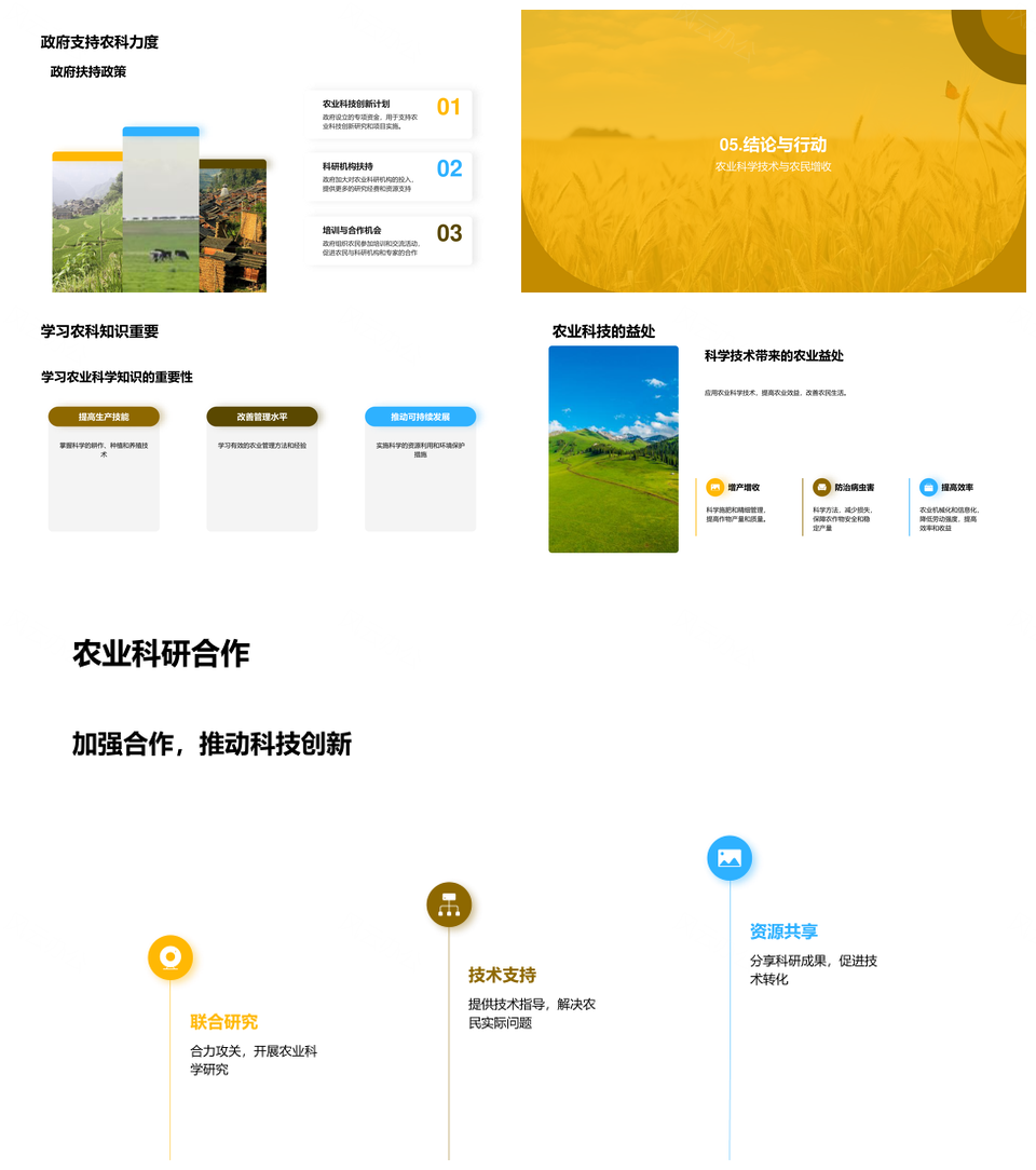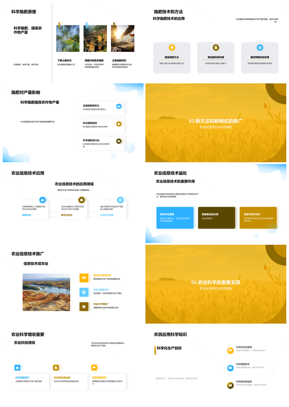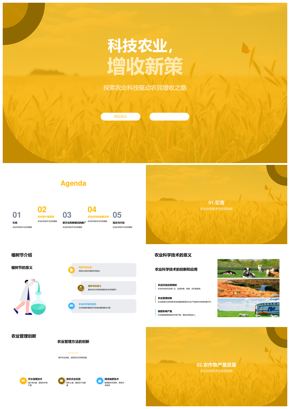 风云办公提供的科技助农科学家献策增产增收PPT模板,下载格式为pptx,一共23页,作品中文字及图均可以修改和编辑,图片更改请在作品中右键图片并更换,文字修改请直接点击文字进行修改。