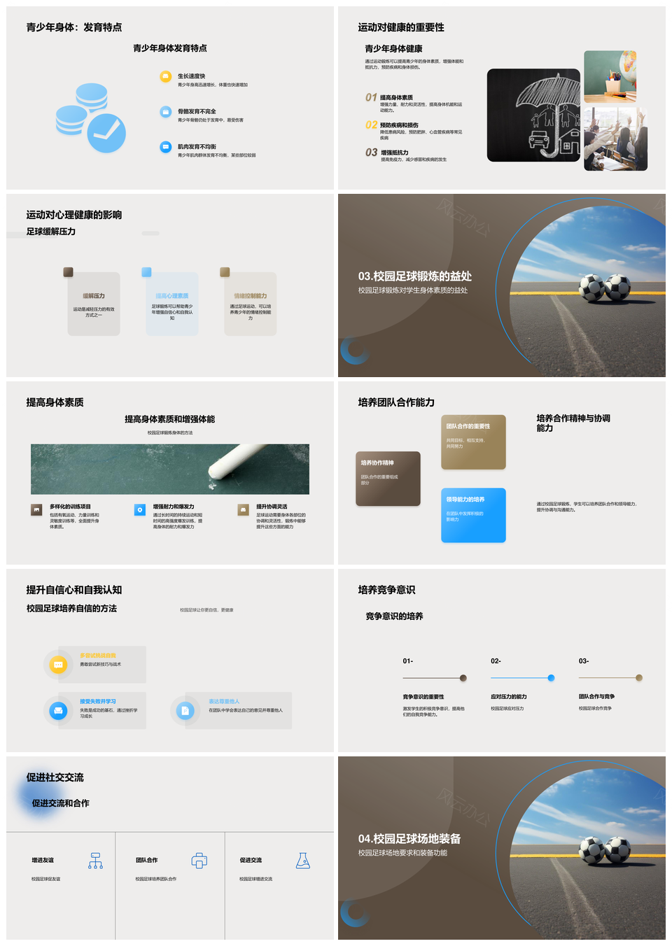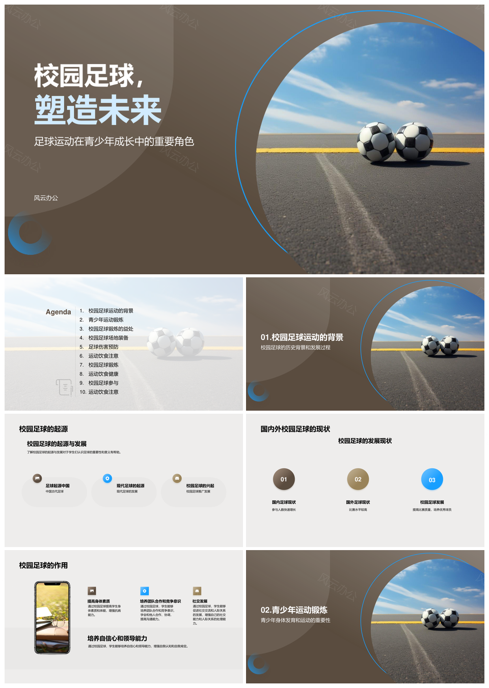 风云办公提供的校园足球助初三学生健康自信成长PPT模板,下载格式为pptx,一共45页,作品中文字及图均可以修改和编辑,图片更改请在作品中右键图片并更换,文字修改请直接点击文字进行修改。
