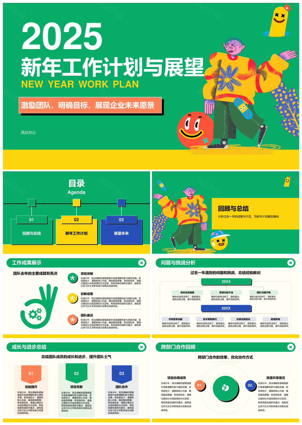 2025绿色新年工作计划目标战略团队激励企业发展愿景PPT模板