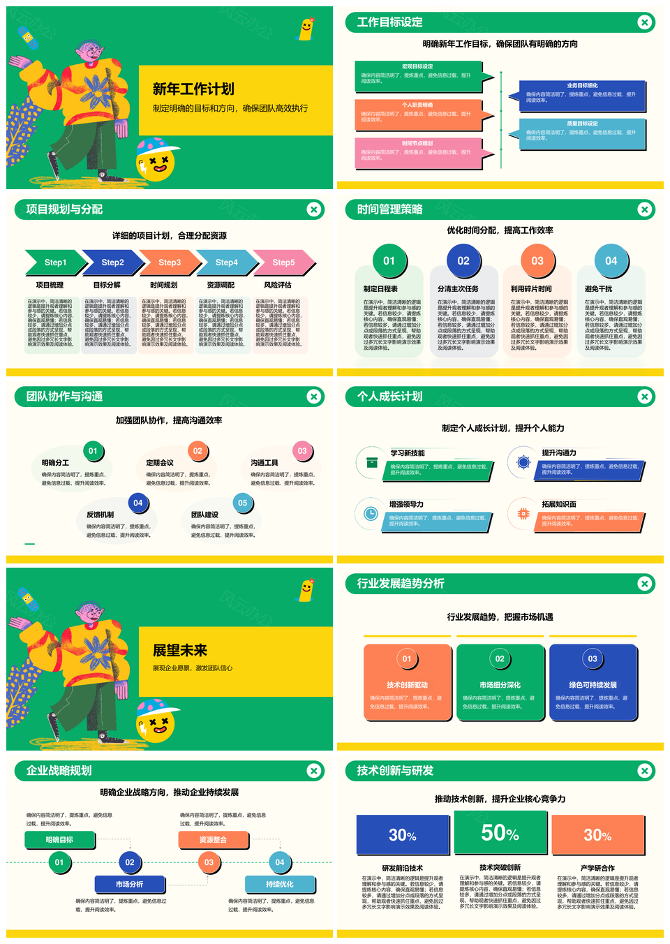 2025绿色新年工作计划目标战略团队激励企业发展愿景PPT模板推荐