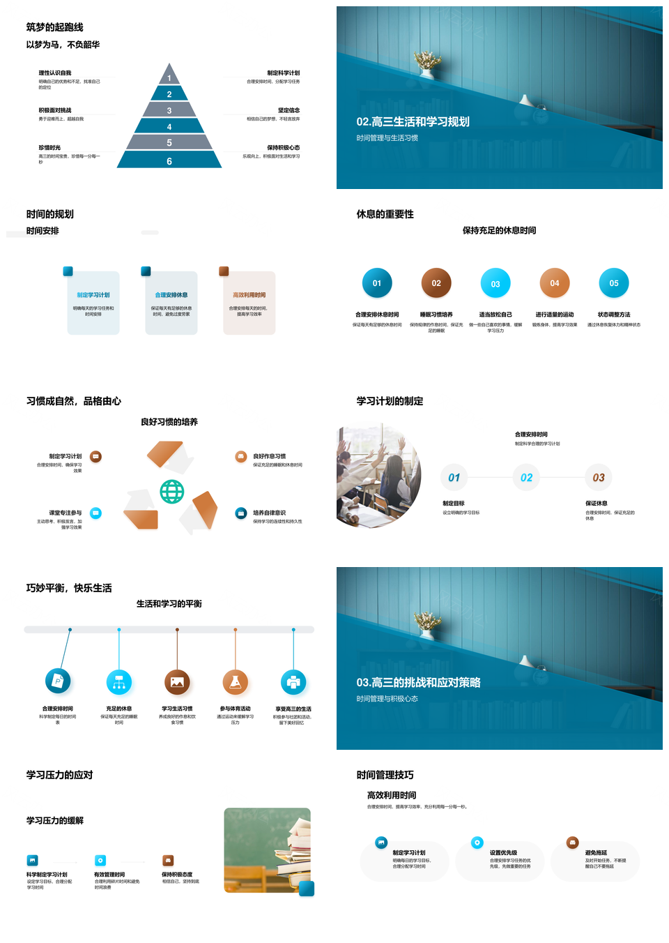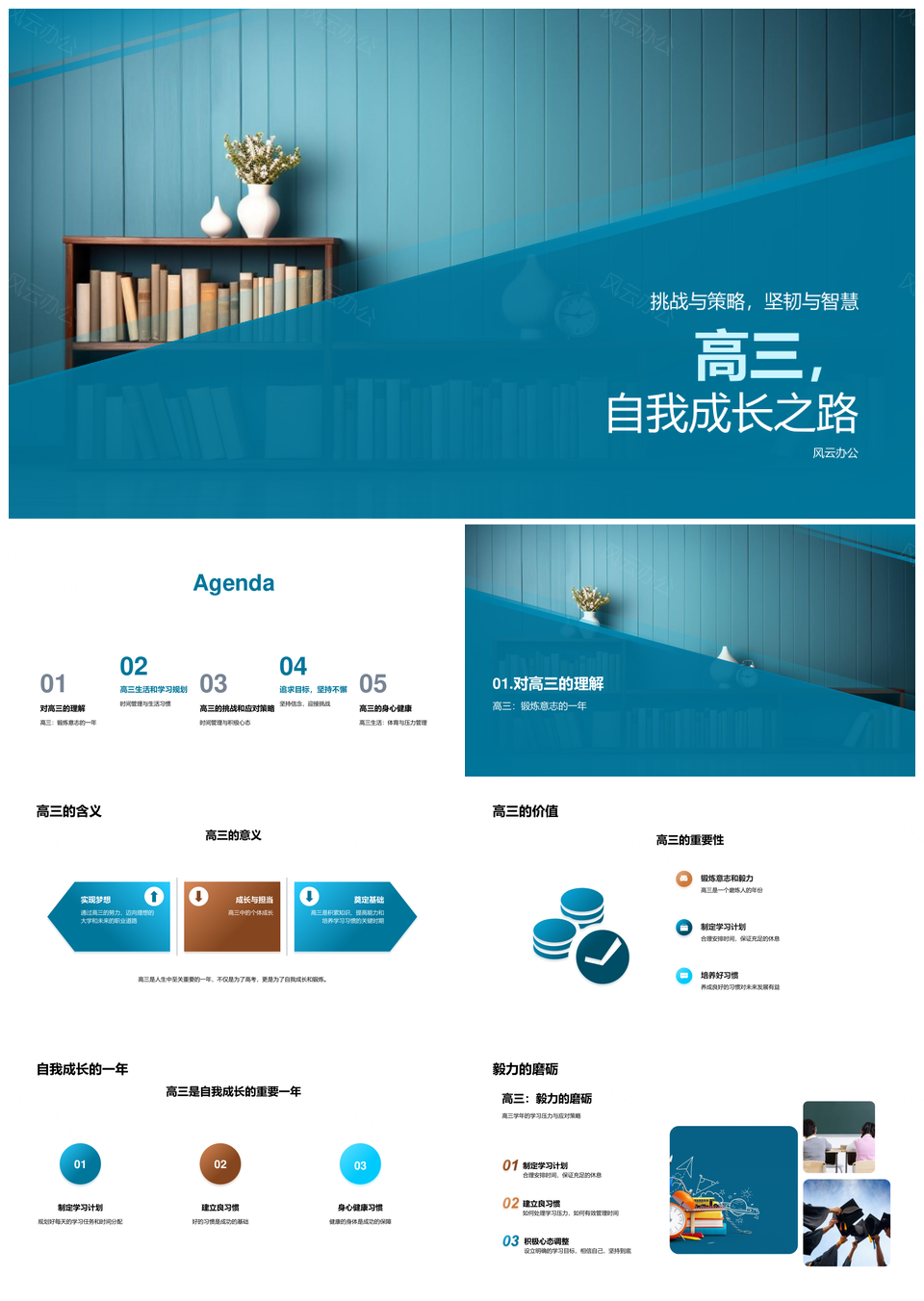 风云办公提供的高三成长挑战策略时间智慧坚韧PPT模板,下载格式为pptx,一共33页,作品中文字及图均可以修改和编辑,图片更改请在作品中右键图片并更换,文字修改请直接点击文字进行修改。