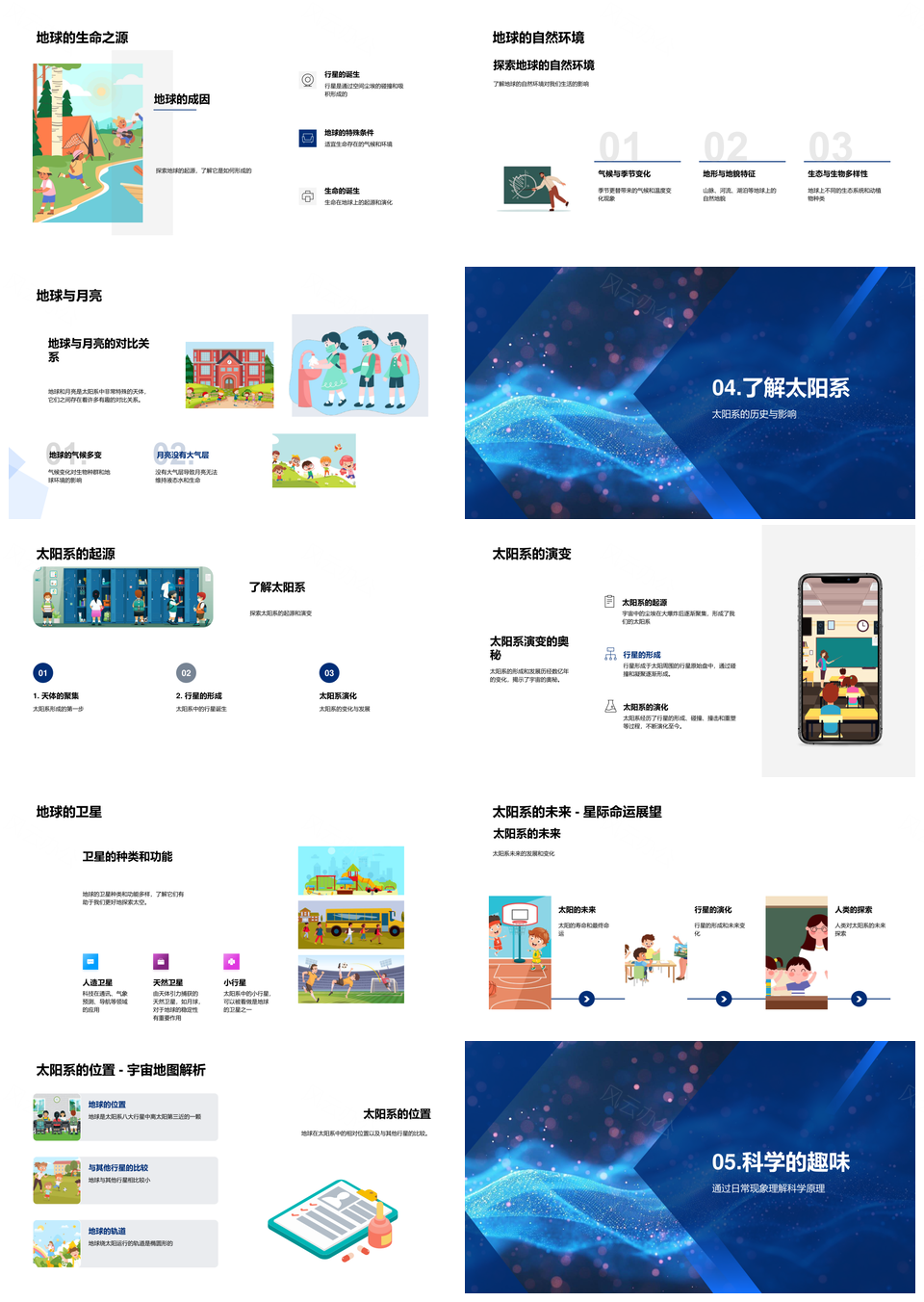 2025太阳系行星地球卫星小行星科学教学探索PPT模板