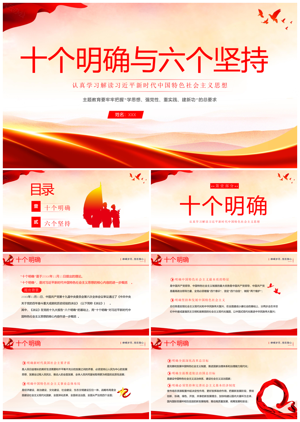 2023主题教育十个明确六个坚持二十大精神微党课PPT模板推荐