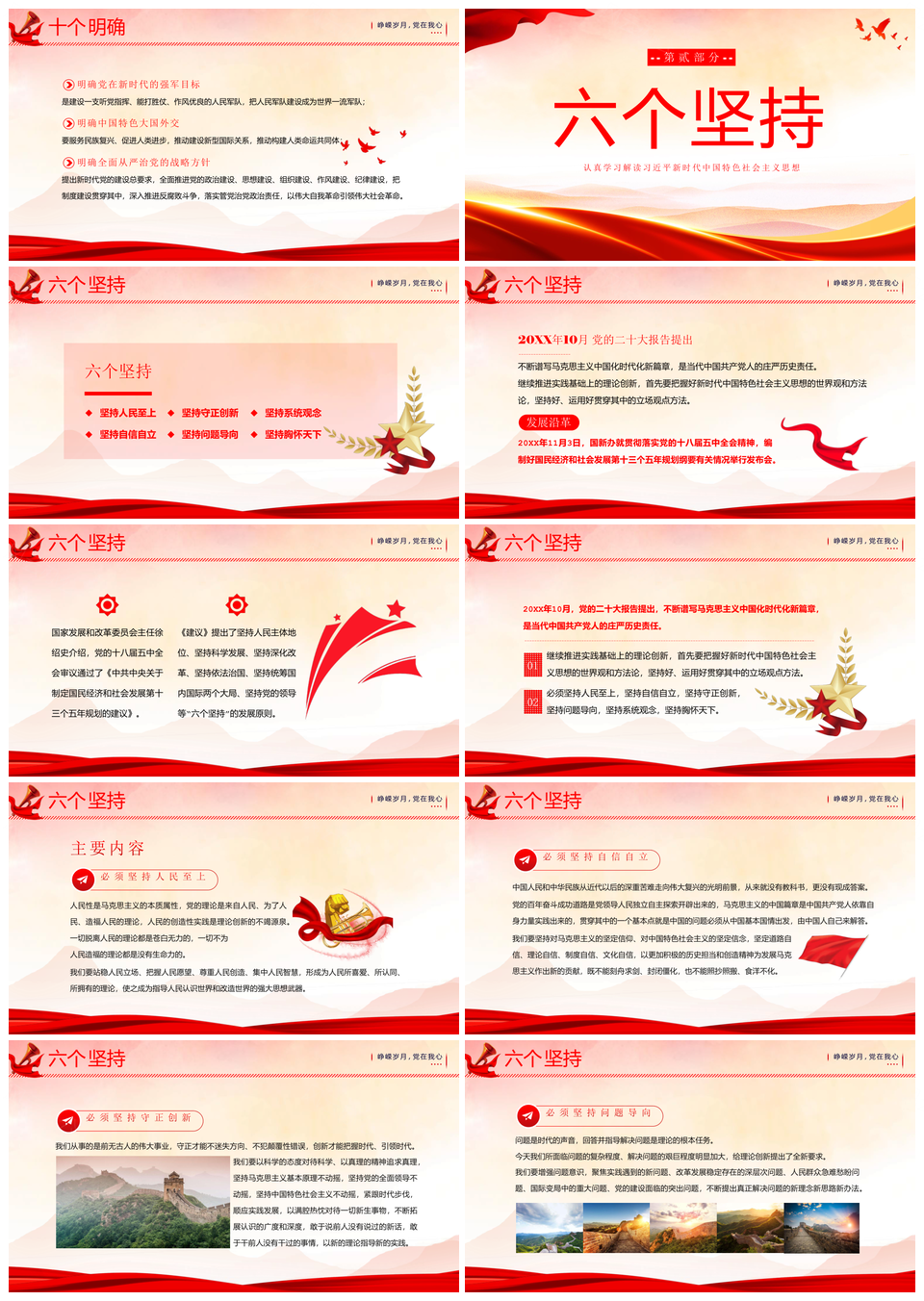 2023十个明确六坚持二十大精神主题教育党建党课PPT模板