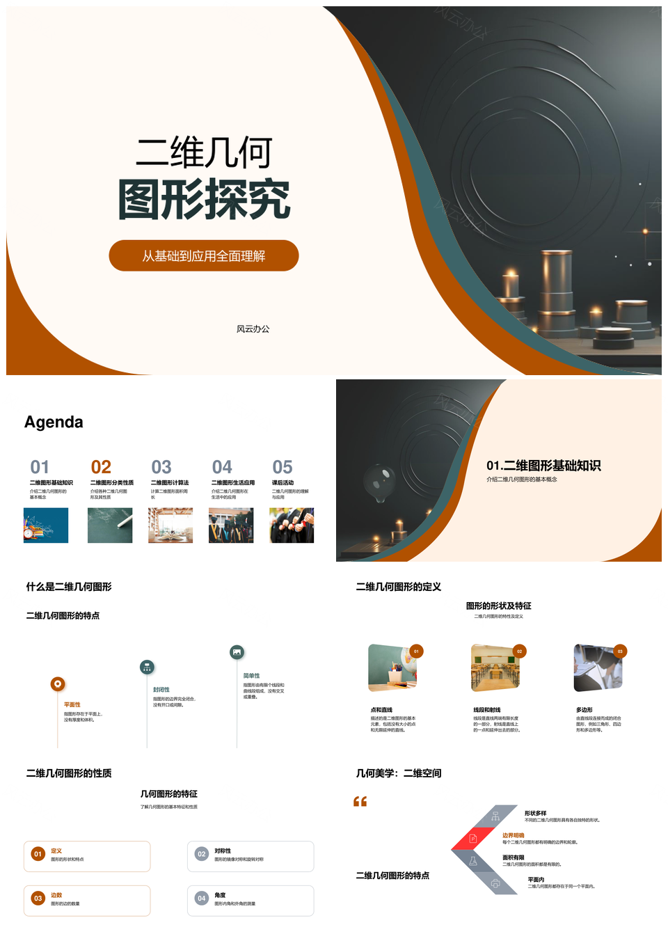 风云办公提供的二维几何图形面积周长计算探究PPT模板,下载格式为pptx,一共29页,作品中文字及图均可以修改和编辑,图片更改请在作品中右键图片并更换,文字修改请直接点击文字进行修改。