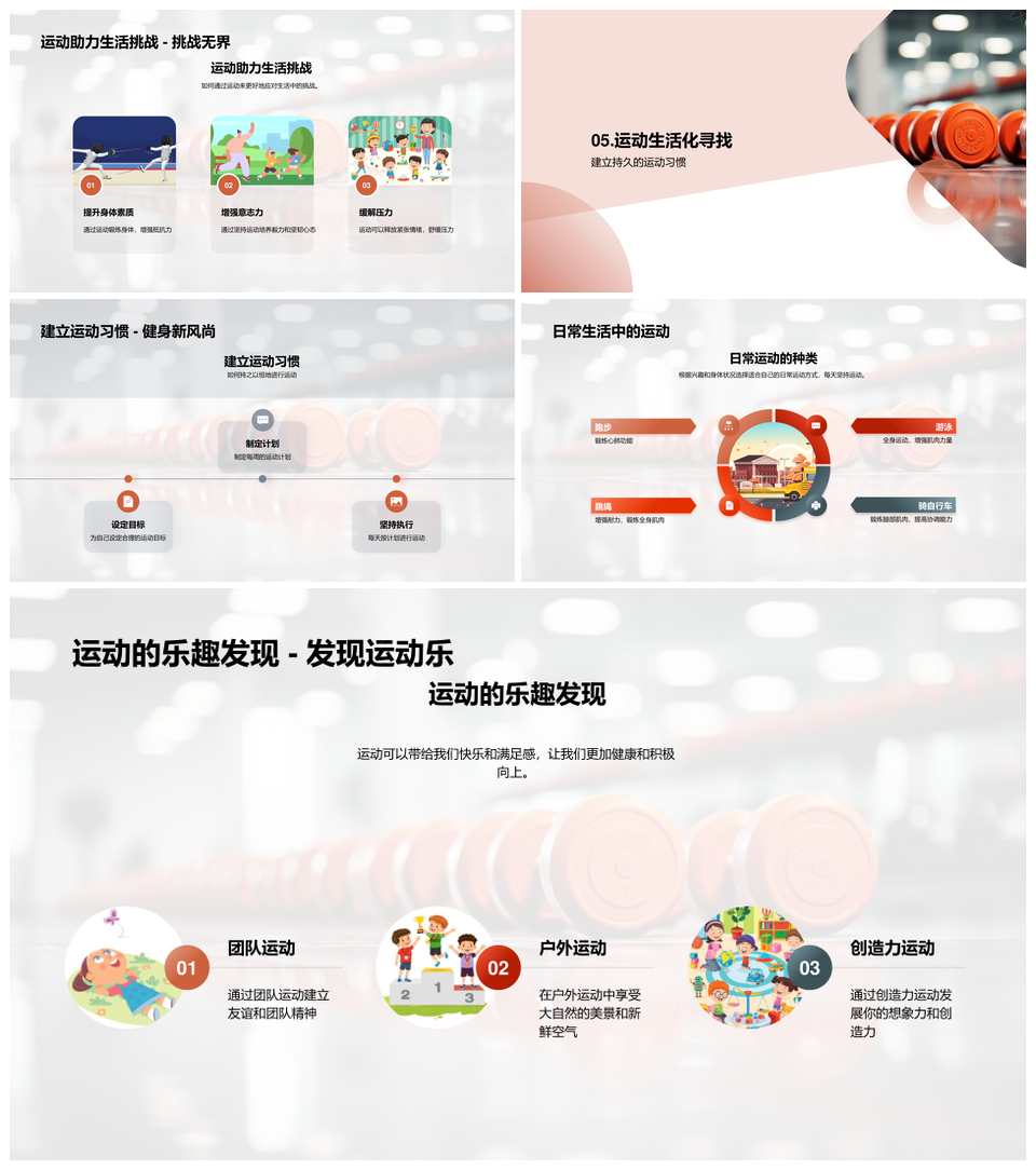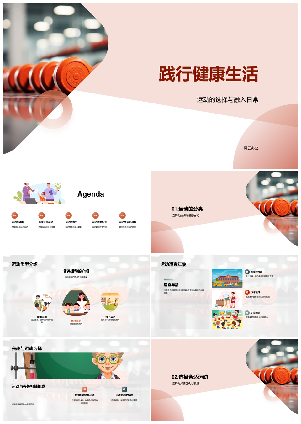 风云办公提供的健康生活选哑铃适龄运动融入日常PPT模板,下载格式为pptx,一共23页,作品中文字及图均可以修改和编辑,图片更改请在作品中右键图片并更换,文字修改请直接点击文字进行修改。