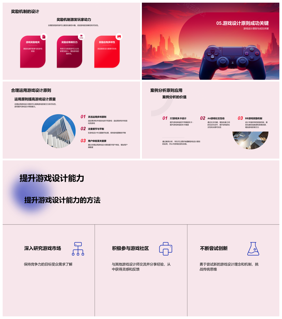 风云办公提供的游戏设计专科教育科学定义与案例分析PPT模板,下载格式为pptx,一共23页,作品中文字及图均可以修改和编辑,图片更改请在作品中右键图片并更换,文字修改请直接点击文字进行修改。