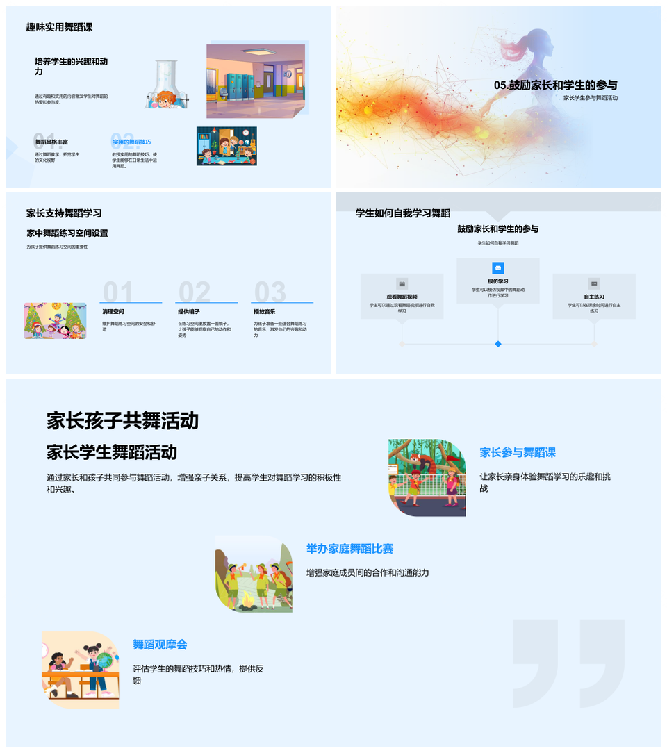 2025舞蹈课程规划身心素质多样性目标进度乐感家长参与PPT模板推荐