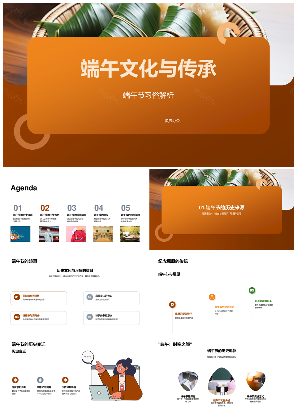风云办公提供的端午屈原粽龙舟香艾传承文化PPT模板,下载格式为pptx,一共33页,作品中文字及图均可以修改和编辑,图片更改请在作品中右键图片并更换,文字修改请直接点击文字进行修改。