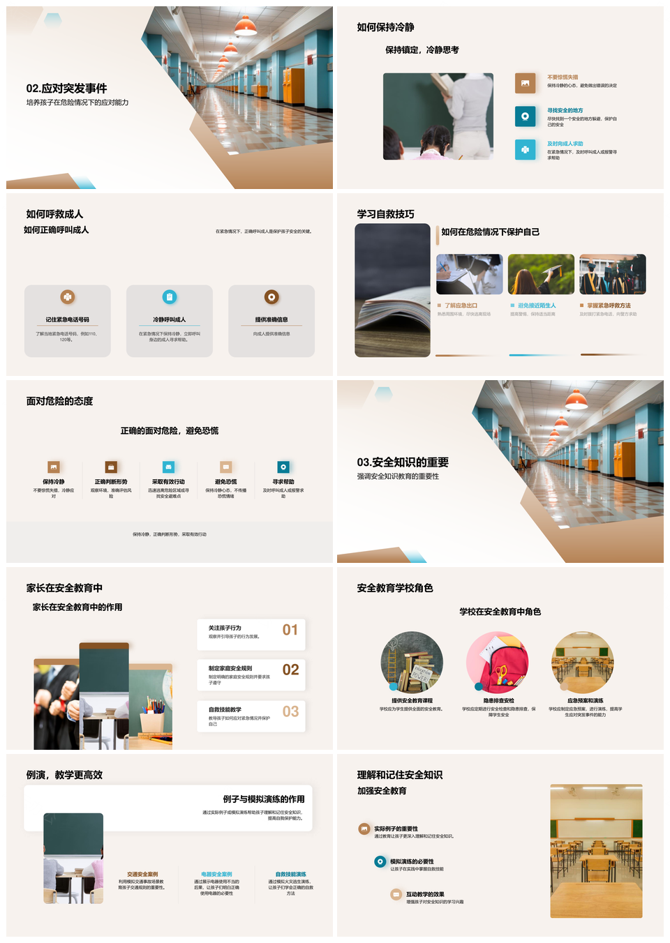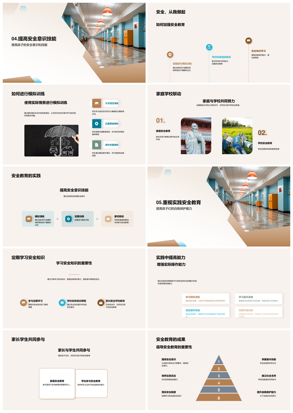 初中生家校联动安全教育消防交通食安头盔PPT模板