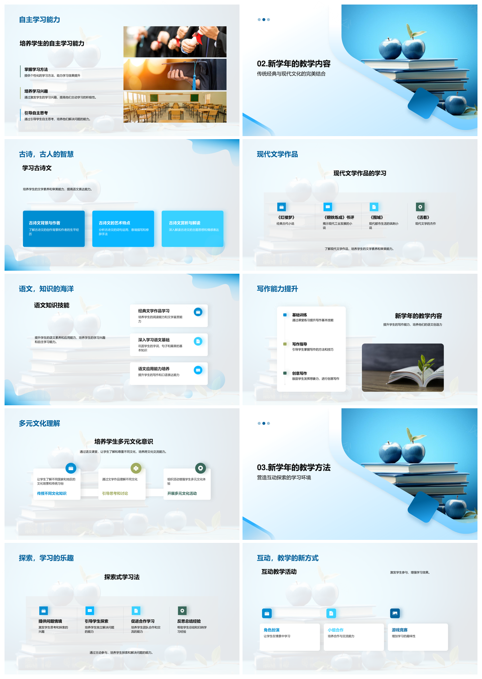 这是一张新纪元语文探索互动实践家校共育创新课程PPT模板,包含新纪元、语文、探索、互动、实践、家校、共育、创新、课程等主题内容,也可用作新纪元语文探索互动、探索互动实践创新、实践家校共育创新课程、新纪元语文互动实践、语文探索互动实践、互动实践家校共育创新、探索实践家校共育创新、家校共育创新课程、新纪元语文探索、语文探索互动、探索互动实践、互动实践创新、实践家校共育创新、新纪元互动实践、家校共育创新课程等PPT场景使用。 风云办公提供的新纪元语文探索互动实践家校共育创新课程PPT模板,下载格式为pptx,一共33页,作品中文字及图均可以修改和编辑,图片更改请在作品中右键图片并更换,文字修改请直接点击文字进行修改。
