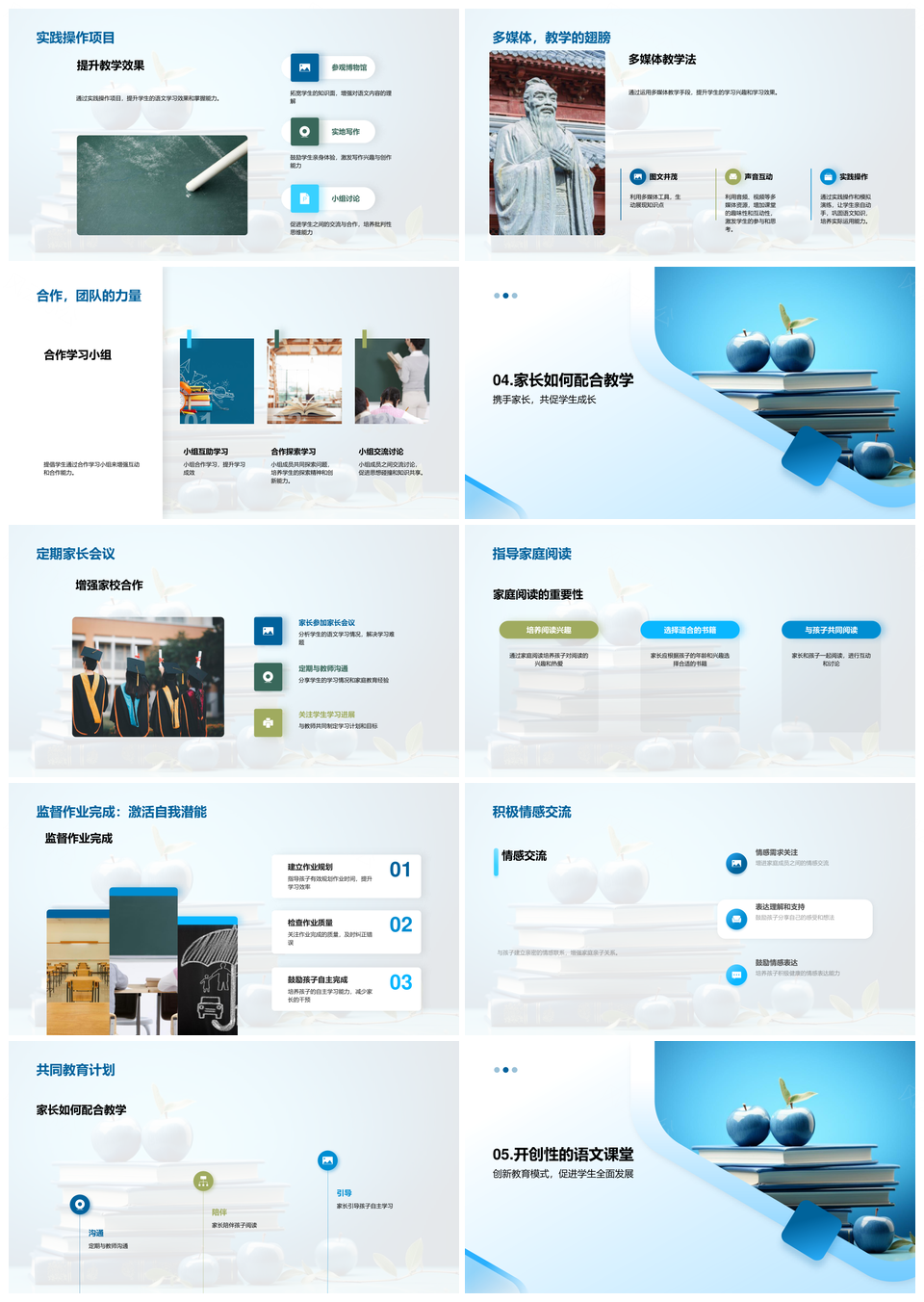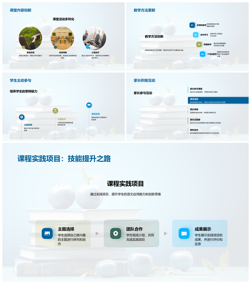 新纪元语文探索互动实践家校共育创新课程PPT模板推荐