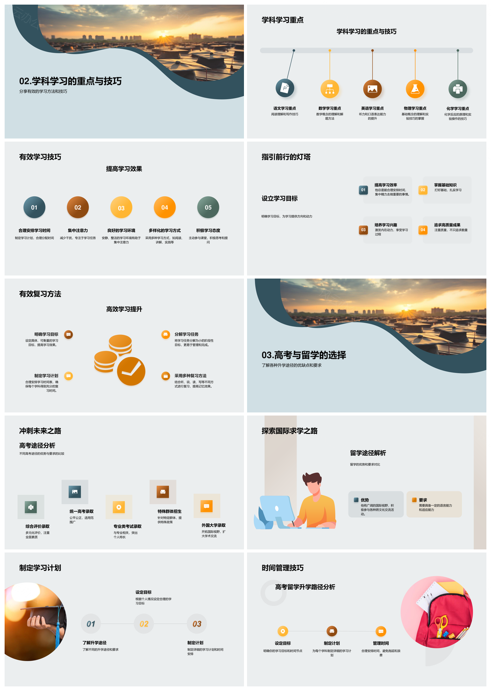 升学路线学习旅程教育制度途径技巧目标高考留学PPT模板推荐
