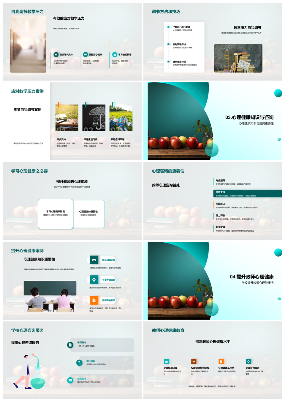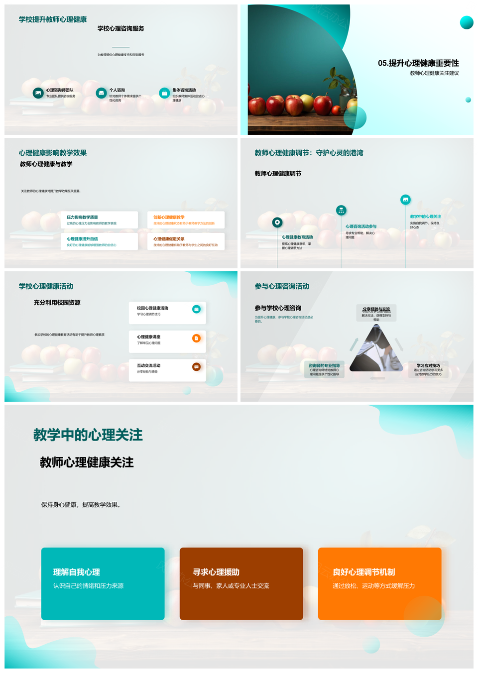 风云办公提供的教师心理健康管理实践提升教学质量PPT模板,下载格式为pptx,一共25页,作品中文字及图均可以修改和编辑,图片更改请在作品中右键图片并更换,文字修改请直接点击文字进行修改。