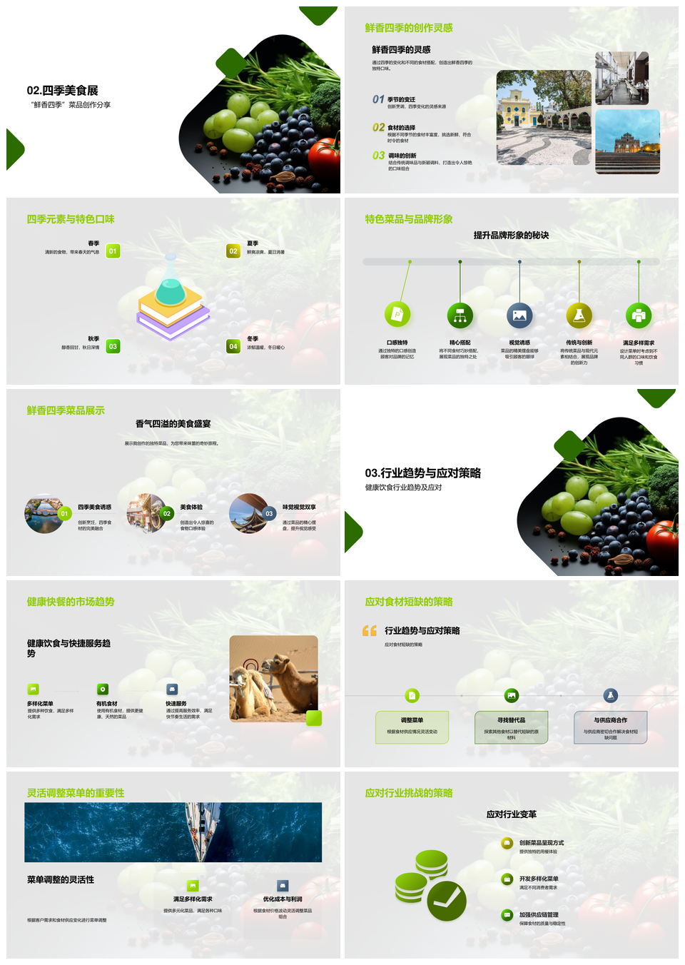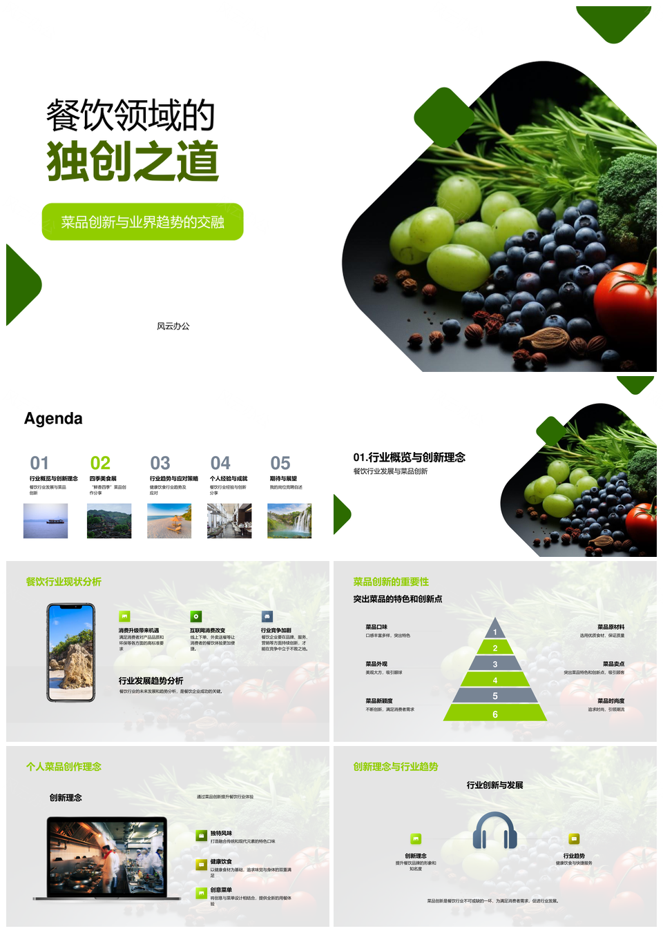 风云办公提供的餐饮创新四季鲜香领航行业趋势PPT模板,下载格式为pptx,一共28页,作品中文字及图均可以修改和编辑,图片更改请在作品中右键图片并更换,文字修改请直接点击文字进行修改。