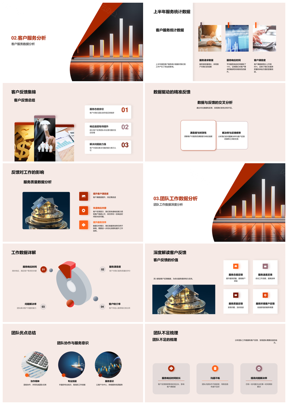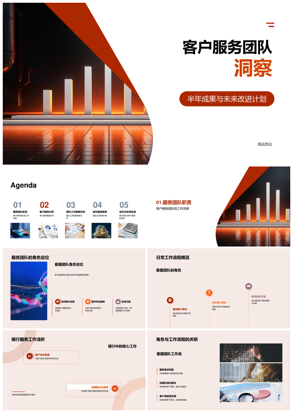 银行分行客服团队半年成果及改进计划分析PPT模板推荐