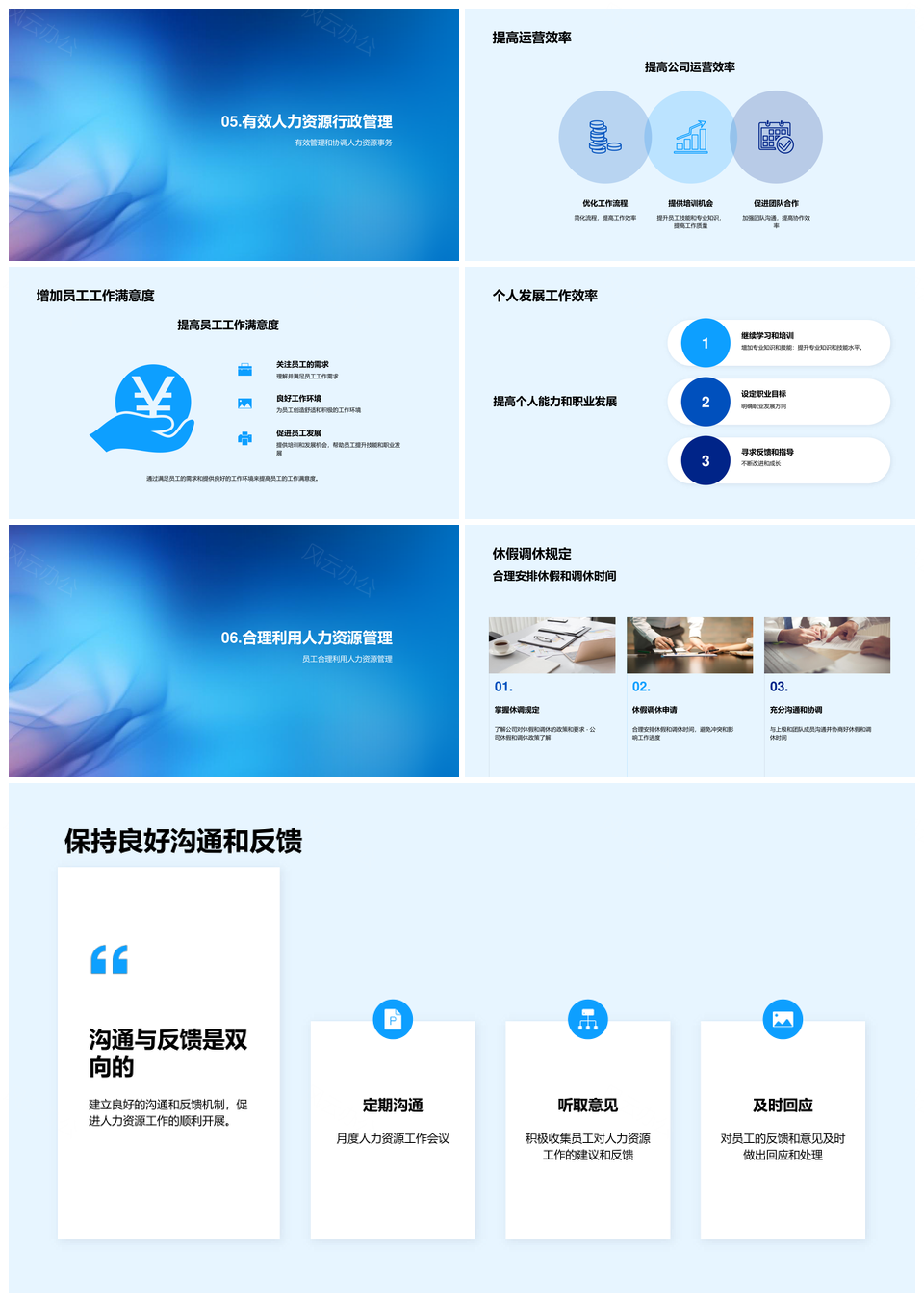 风云办公提供的人力资源行政管理重要性PPT模板,下载格式为pptx,一共25页,作品中文字及图均可以修改和编辑,图片更改请在作品中右键图片并更换,文字修改请直接点击文字进行修改。