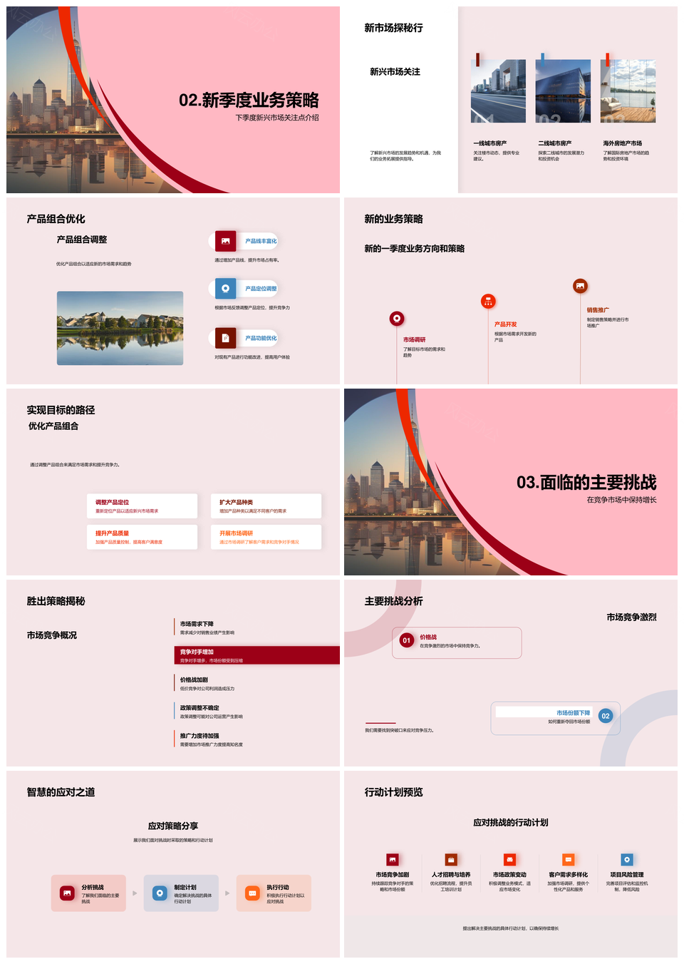 这是一张房产业务季度业绩复盘摩天大楼策略展望PPT模板,包含房产业务、季度业绩、复盘、摩天大楼、策略、展望等主题内容,也可用作房产业务季度业绩复盘、复盘摩天大楼策略展望、房产业务季度业绩、季度业绩复盘、摩天大楼策略展望、房产业务策略展望、业绩复盘摩天大楼、复盘摩天大楼策略、季度业绩、业绩复盘、复盘摩天大楼、摩天大楼策略、策略展望、房产业务策略、房产业务展望等PPT场景使用。 风云办公提供的房产业务季度业绩复盘摩天大楼策略展望PPT模板,下载格式为pptx,一共28页,作品中文字及图均可以修改和编辑,图片更改请在作品中右键图片并更换,文字修改请直接点击文字进行修改。