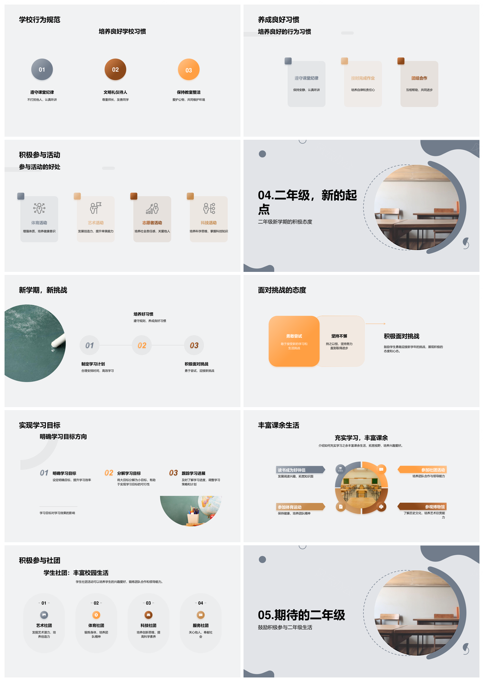 2025二年级学生成长目标学习生活挑战图表规划PPT模板