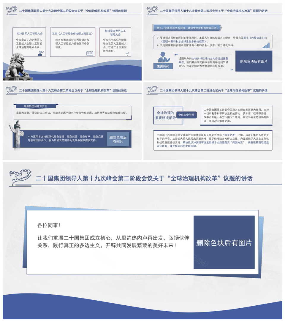 2025二十国集团领导人第十九次峰会全球治理改革讲话PPT模板推荐