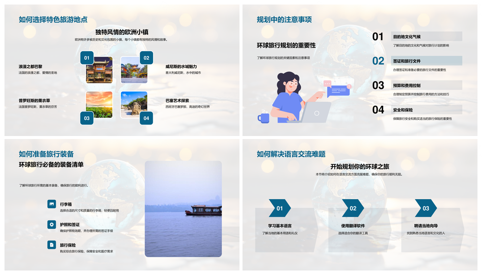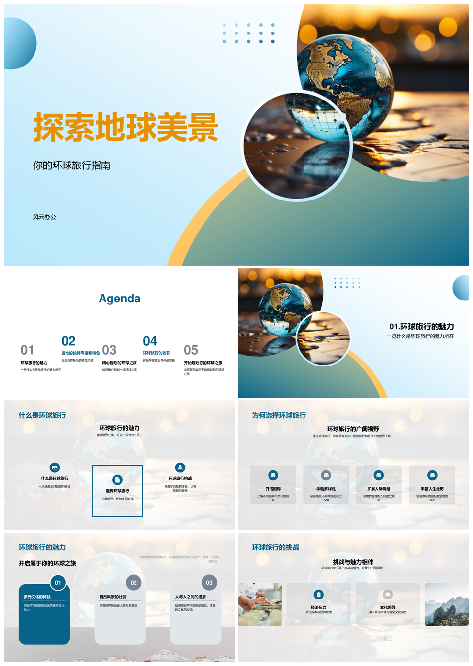 环球旅行规划探秘地球多元文化原始风貌PPT模板推荐