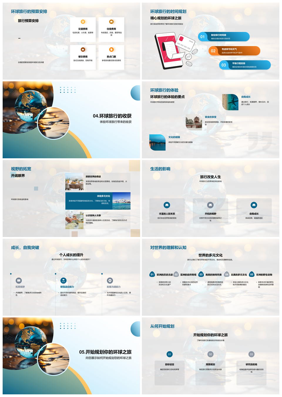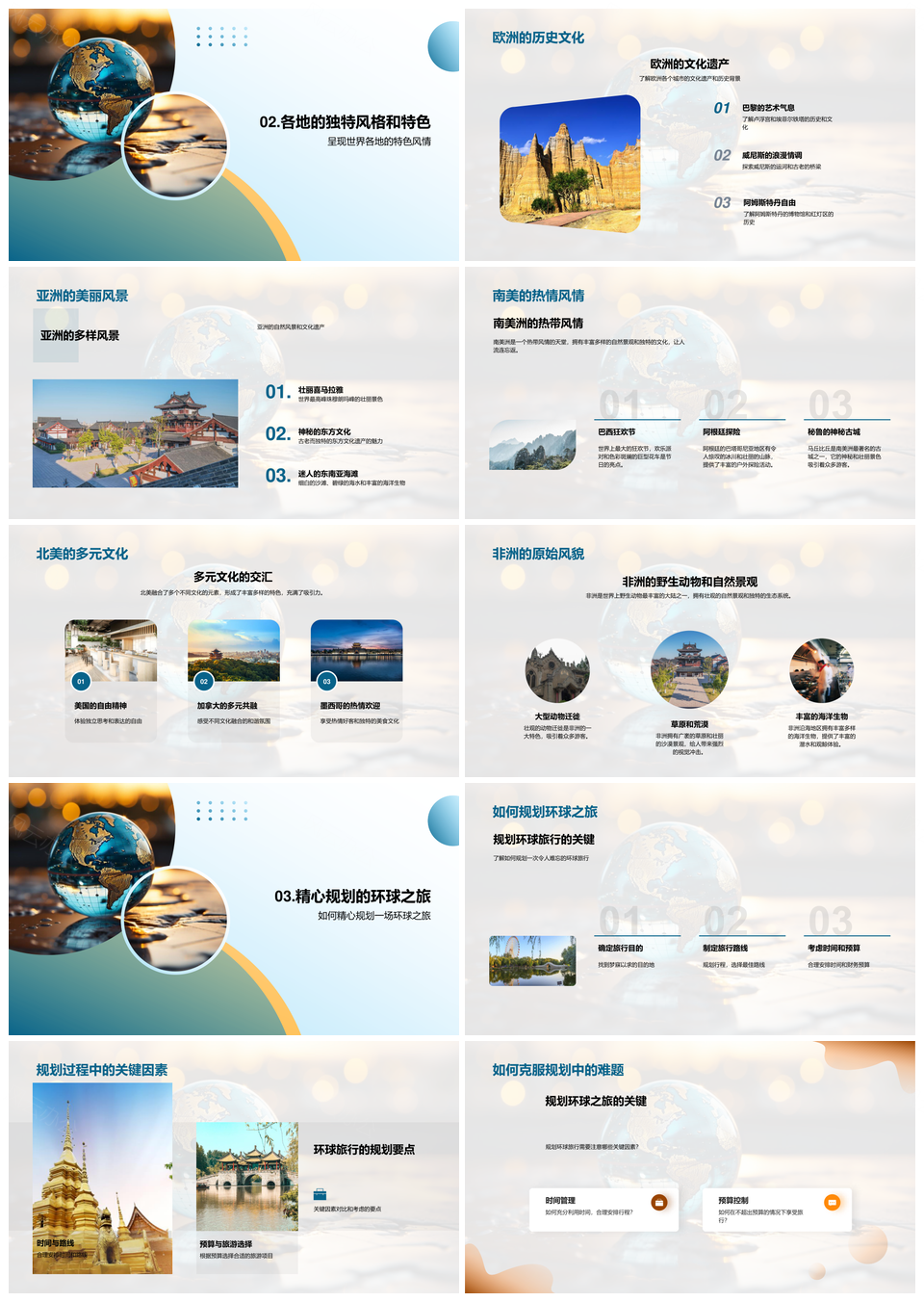 环球旅行规划探秘地球多元文化原始风貌PPT模板