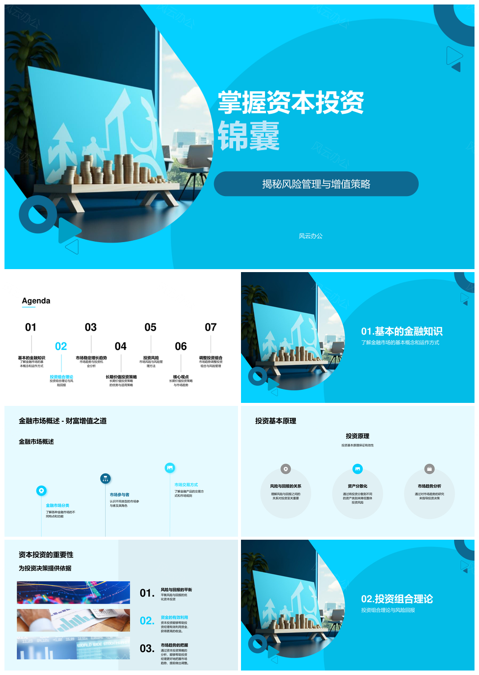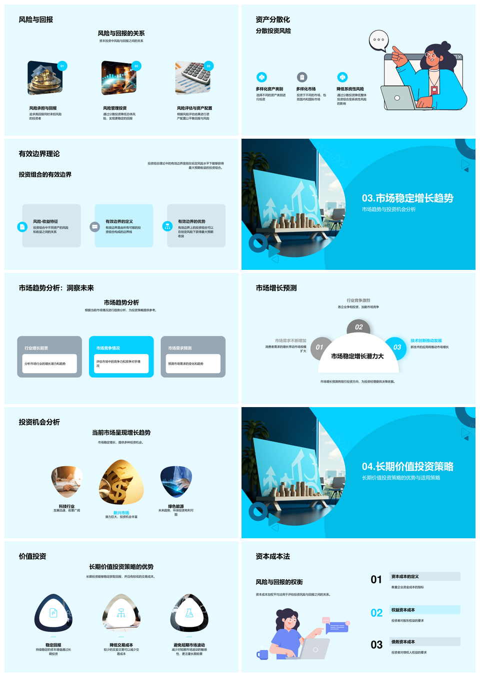 风云办公提供的资本投资策略风险回报与资产分散解析PPT模板,下载格式为pptx,一共31页,作品中文字及图均可以修改和编辑,图片更改请在作品中右键图片并更换,文字修改请直接点击文字进行修改。