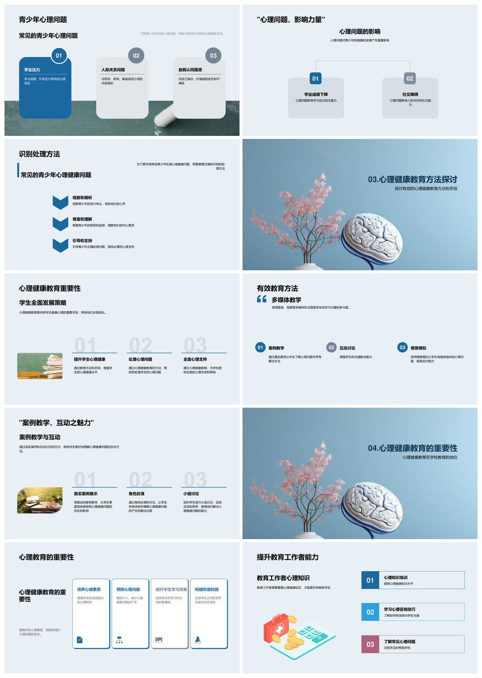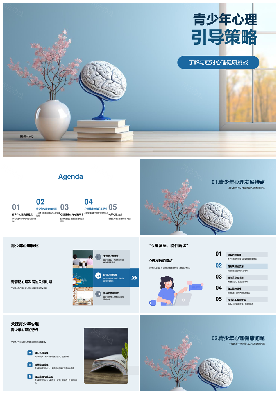 风云办公提供的青少年心理健康教育发展引导策略PPT模板,下载格式为pptx,一共23页,作品中文字及图均可以修改和编辑,图片更改请在作品中右键图片并更换,文字修改请直接点击文字进行修改。