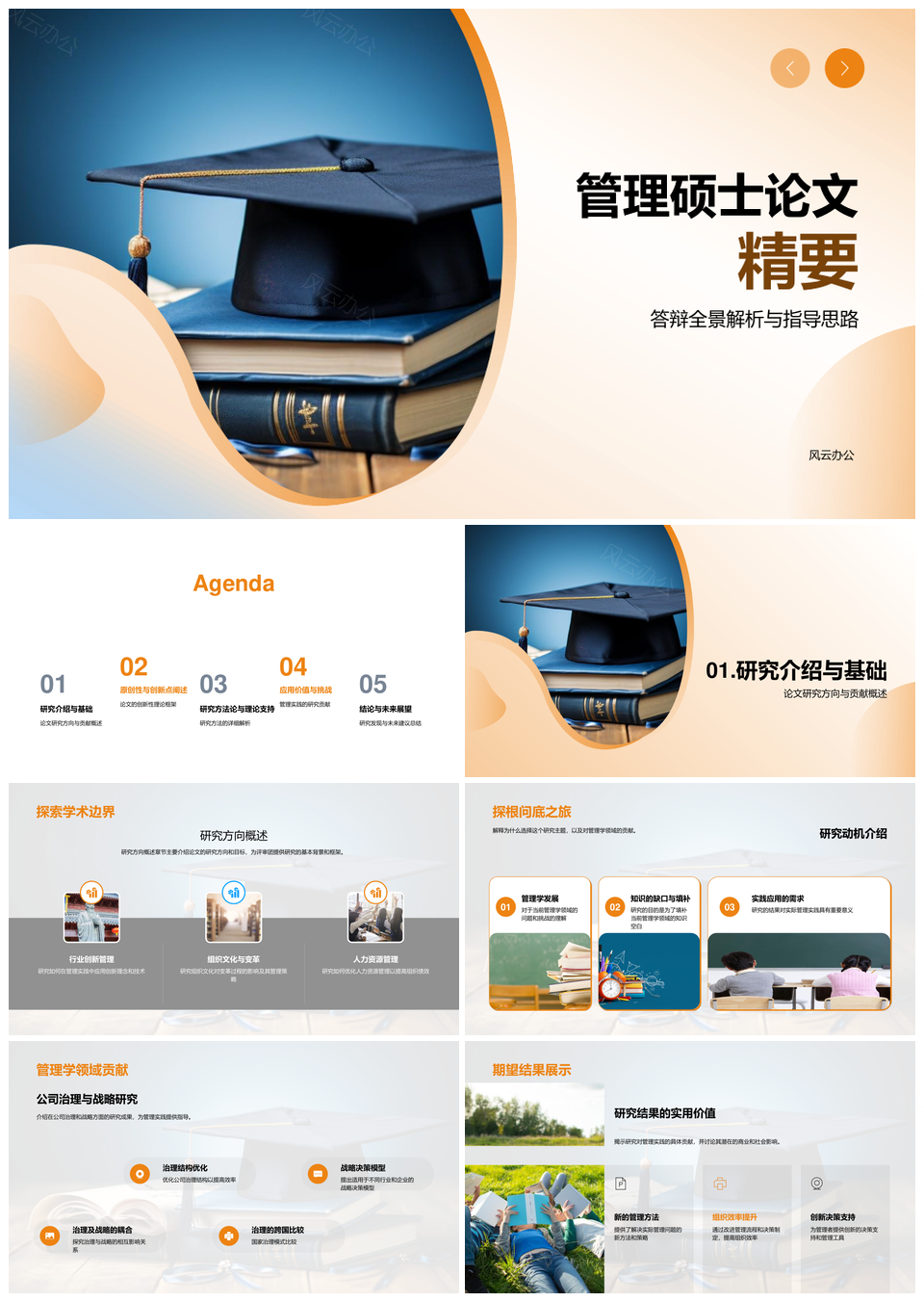 风云办公提供的管理硕士论文答辩指导与理论框架创新PPT模板,下载格式为pptx,一共29页,作品中文字及图均可以修改和编辑,图片更改请在作品中右键图片并更换,文字修改请直接点击文字进行修改。