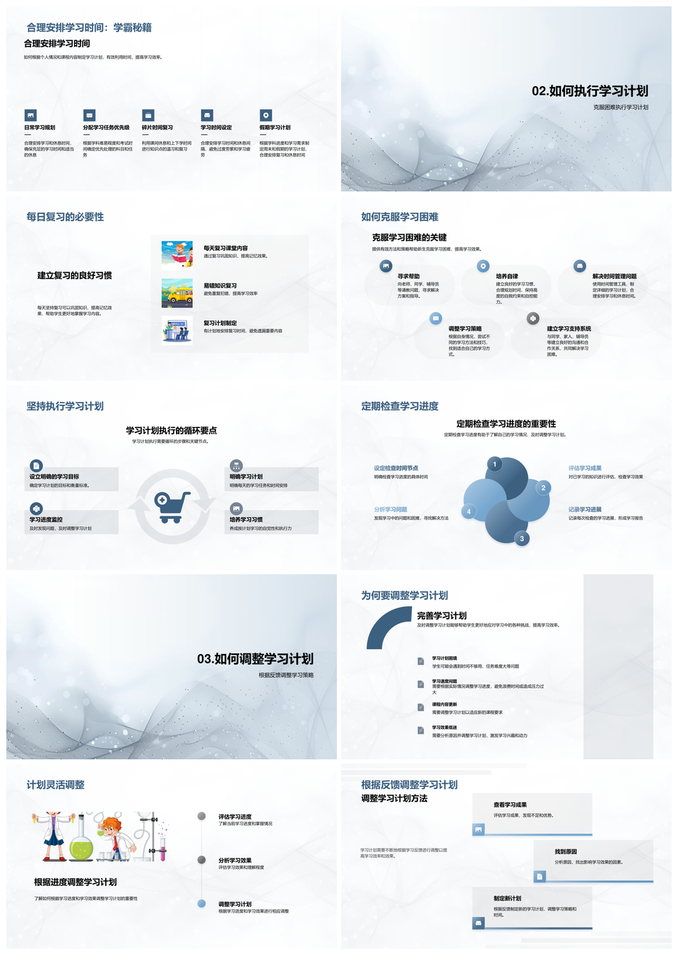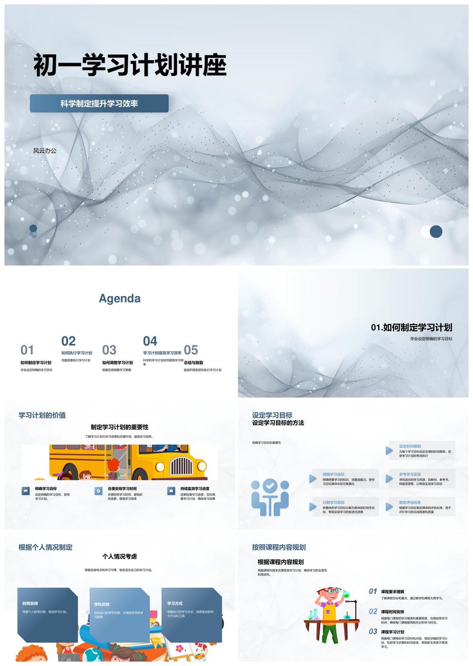 2025初一高效学习计划目标制定时间复习进度检查PPT模板推荐