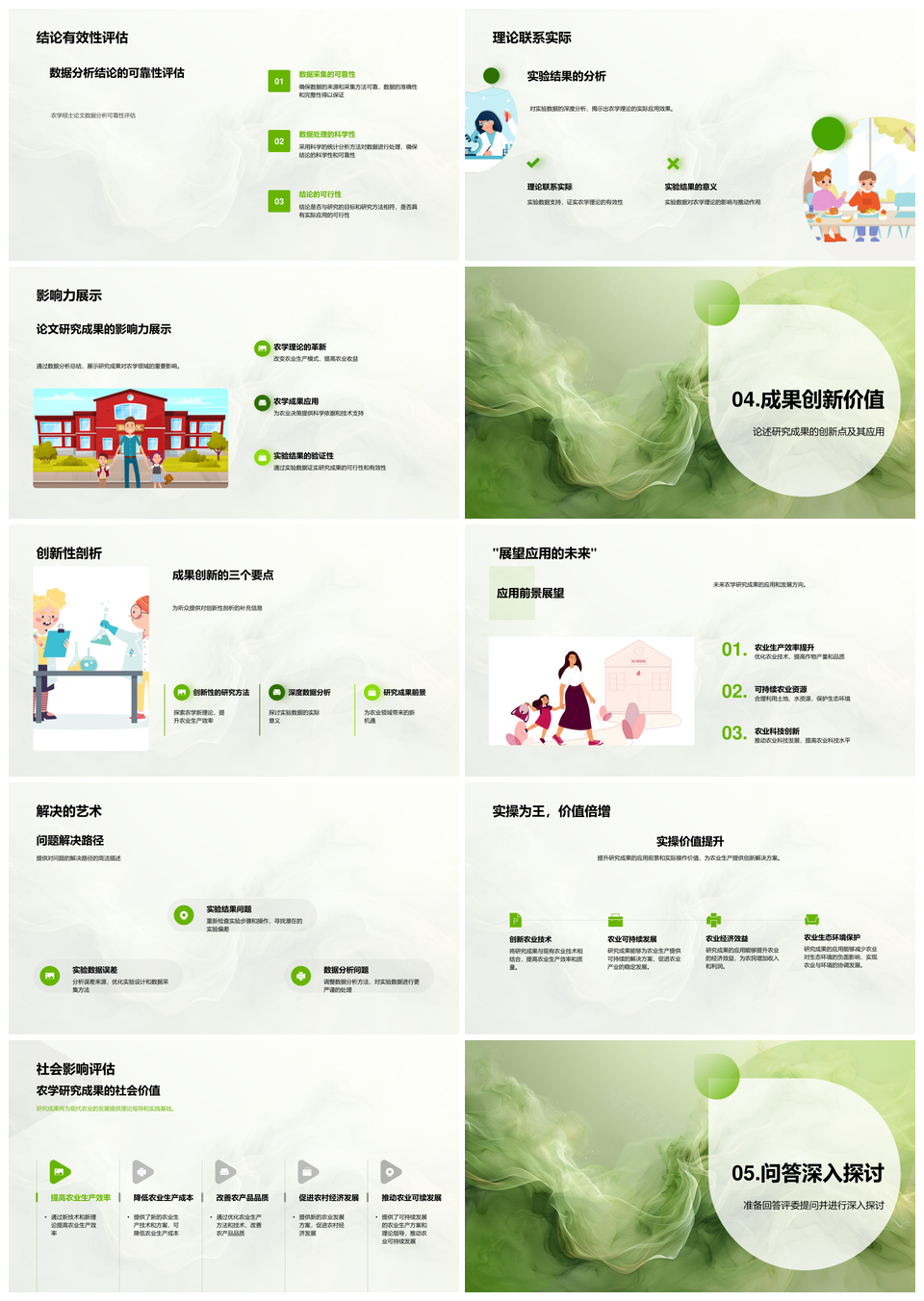 农学毕业答辩研究策略应用成果转化挑战创新分析PPT模板