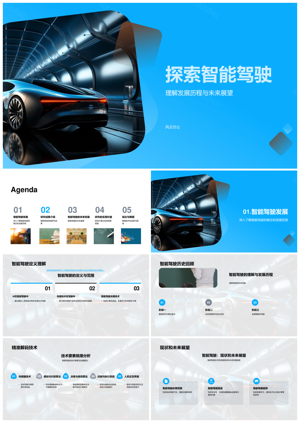 风云办公提供的智能驾驶技术演进与未来展望PPT模板,下载格式为pptx,一共28页,作品中文字及图均可以修改和编辑,图片更改请在作品中右键图片并更换,文字修改请直接点击文字进行修改。